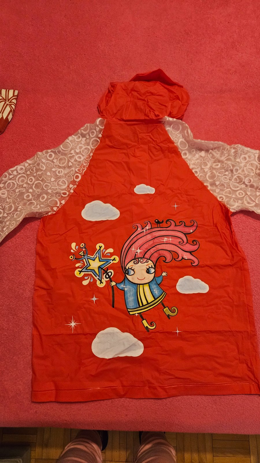 Predám dievčenský pršiplášť. Veľkosť prosím pozrieť podľa rozmerov. Materiál je pevnejší nielen ako sáčok. 😉