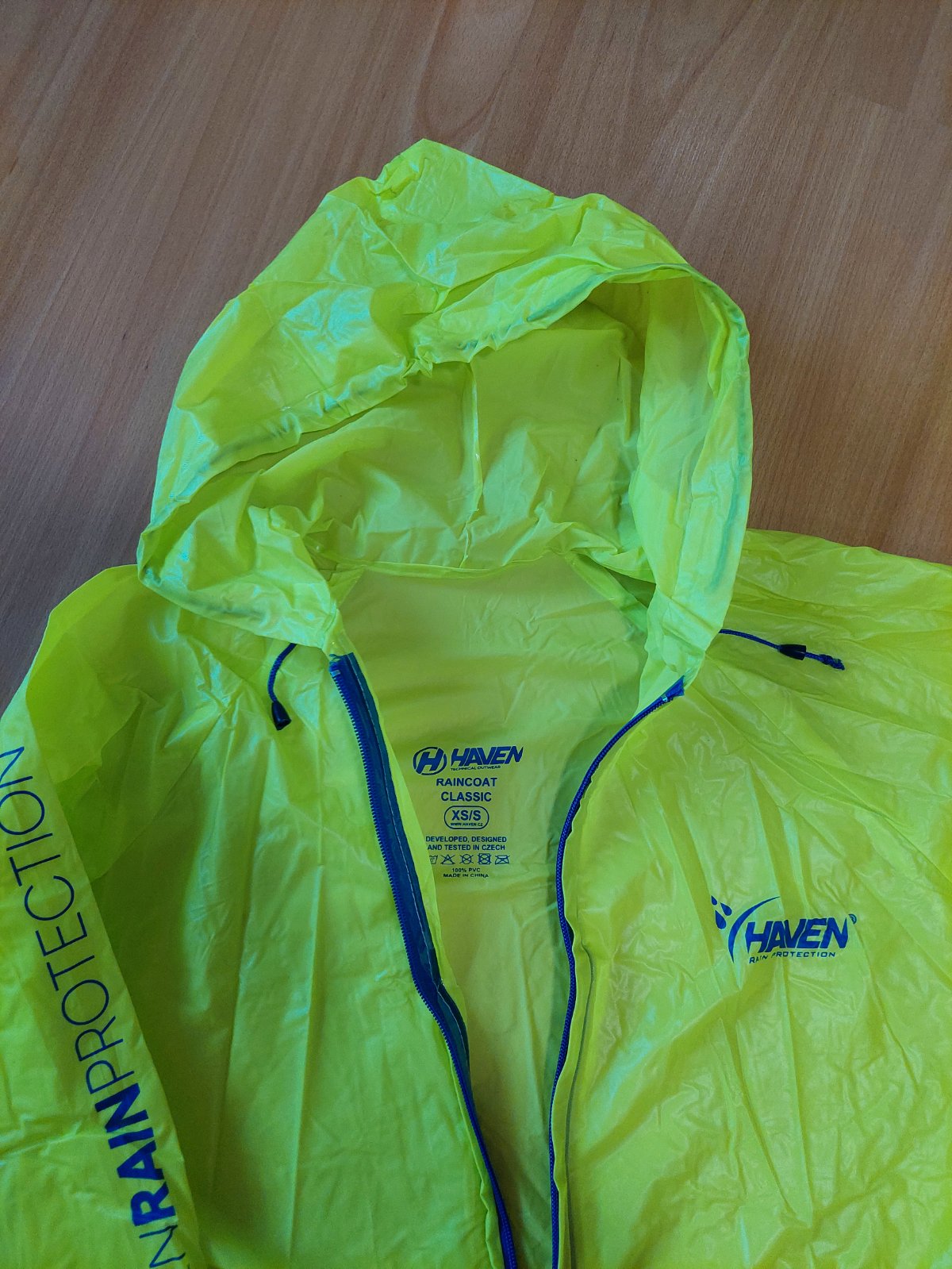 Neonovo zlty/zeleny prsiplast- plastenka ceskej znacky Haven, velk. 158/164 (pisana velkost xs/s). Je v top stave, bez poskodeni, bol obleceny len 1x (mali sme na horach stastie na "nedaždive" pocasie 😉)