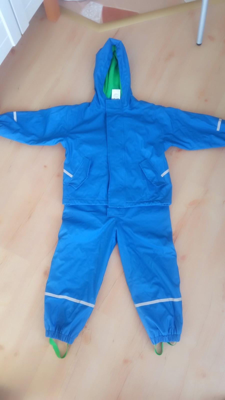 Nepremokavá súprava do dažďa, zateplená fleesom, vo výbornom stave, ako nová. Jedine mala oderka vzadu na bude, odfotená na detailnej fotke.