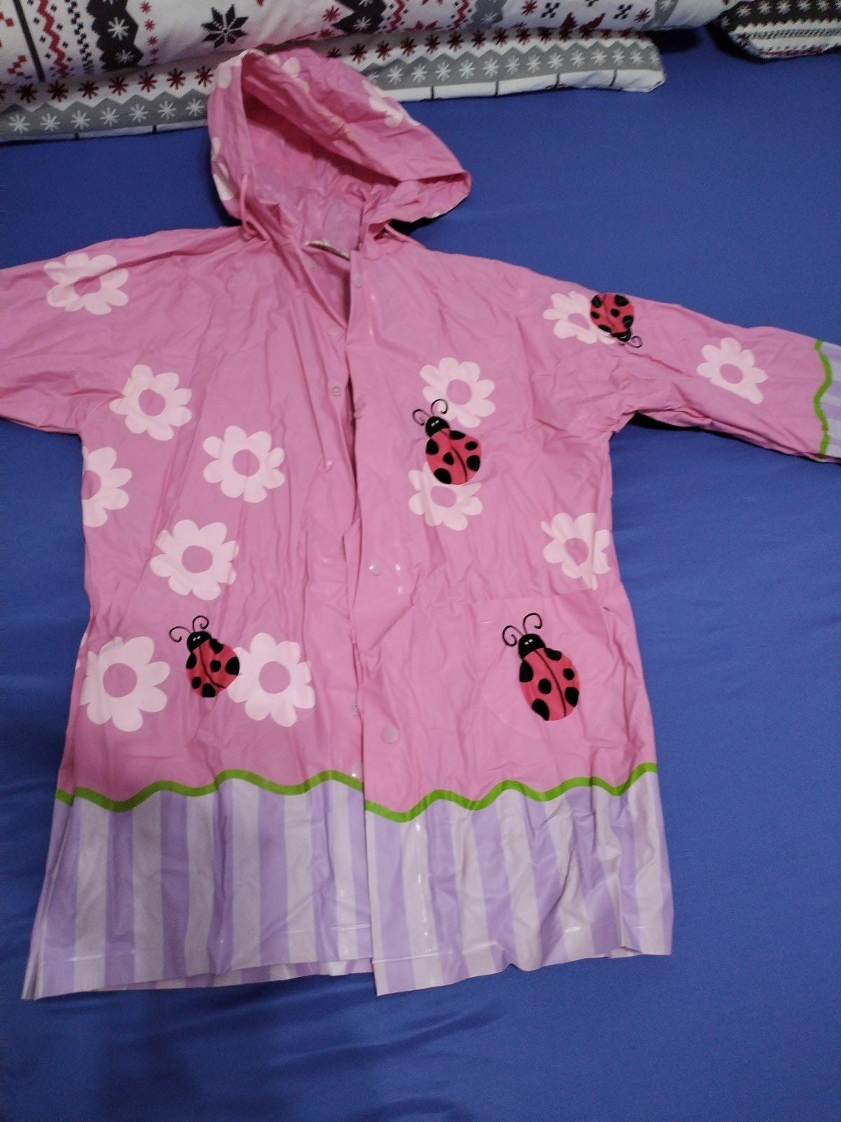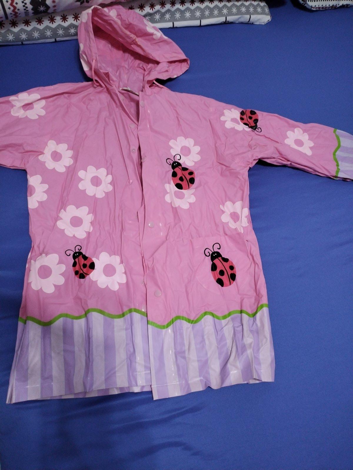 Predám krásny pršiplášť, dcérka hp mala max 2 x, vrecko je trošku natrhnuté, asi na 2 miestach, ale zaleppili sme, na bundu keď prší je super.Dĺžka pršiplášťa je 64 cm a rukáv 53 od krku