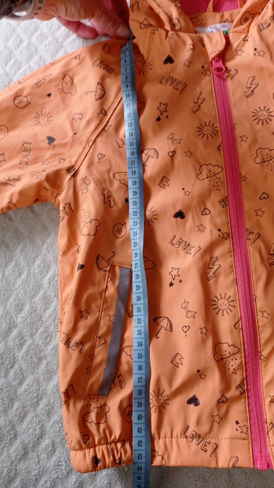 Bunda do dažďa, nosena, v peknom stave, ale bohuzial ma malu dierku zozadu pod rukavom, vid foto. Veľkosť 92/98