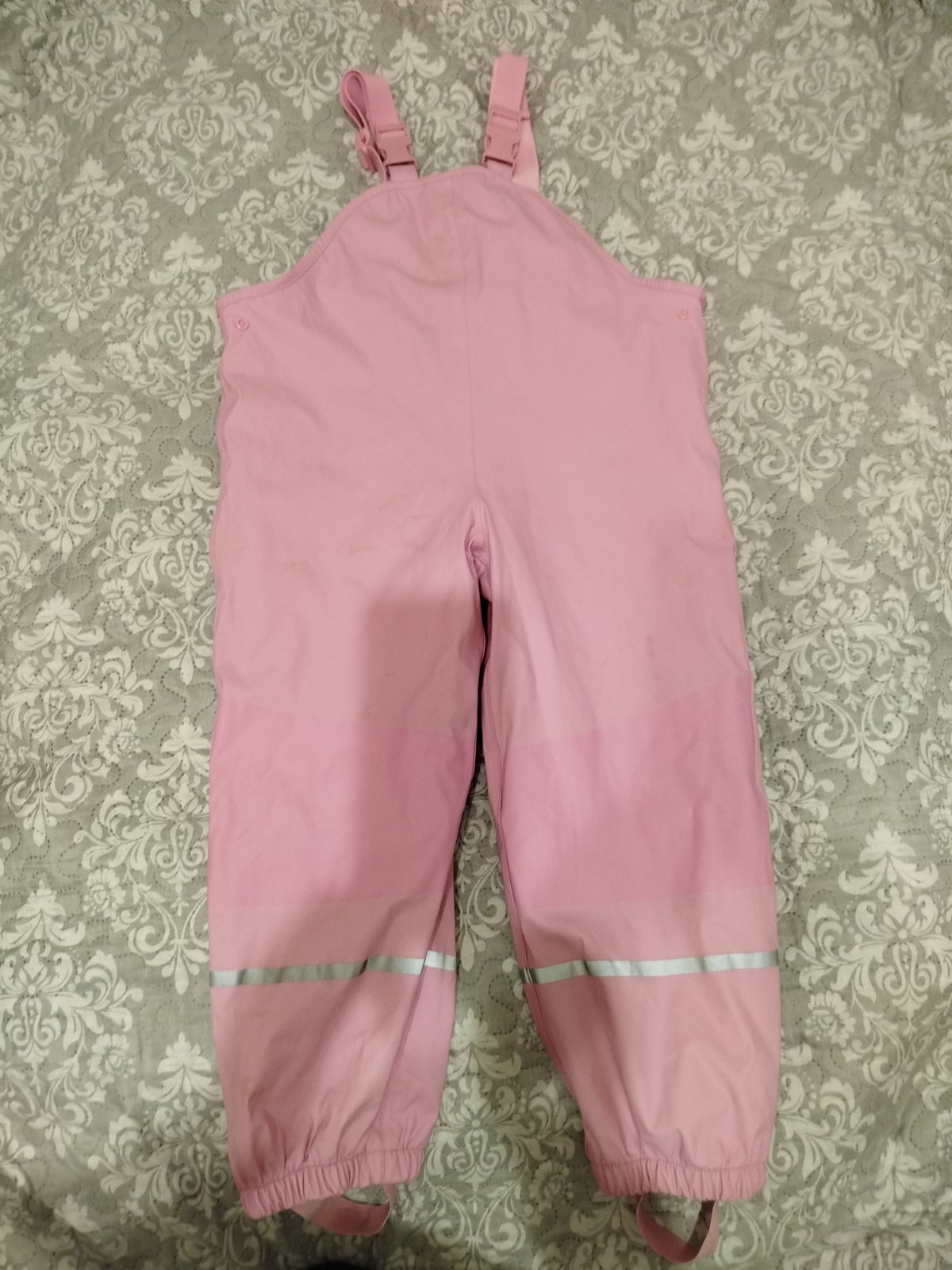 Top stav! Asi raz oblečené gate do dažďa. Sú v perfektnom stave, skoro ako nové. Dajú sa v páse regulovať. Majú na nohe reflexný pásik a na spodu gumičku, aby sa nevyhŕňali v gumákoch.