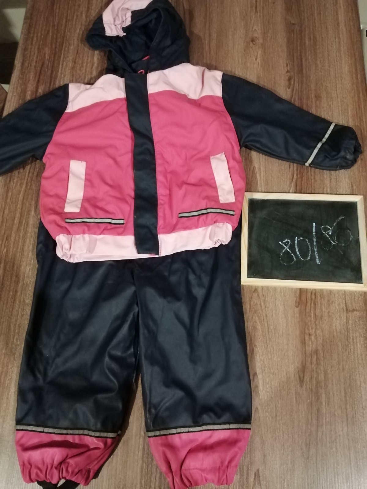 Predám súpravu do dažďa. Bez poškodení. Zateplená flisom, reflexné prvky, nohavice na zips, na spodku gumička. K súprave pridám nohavice( sustak podsity flisom) Tchibo na kolienku zašite, ale určit...