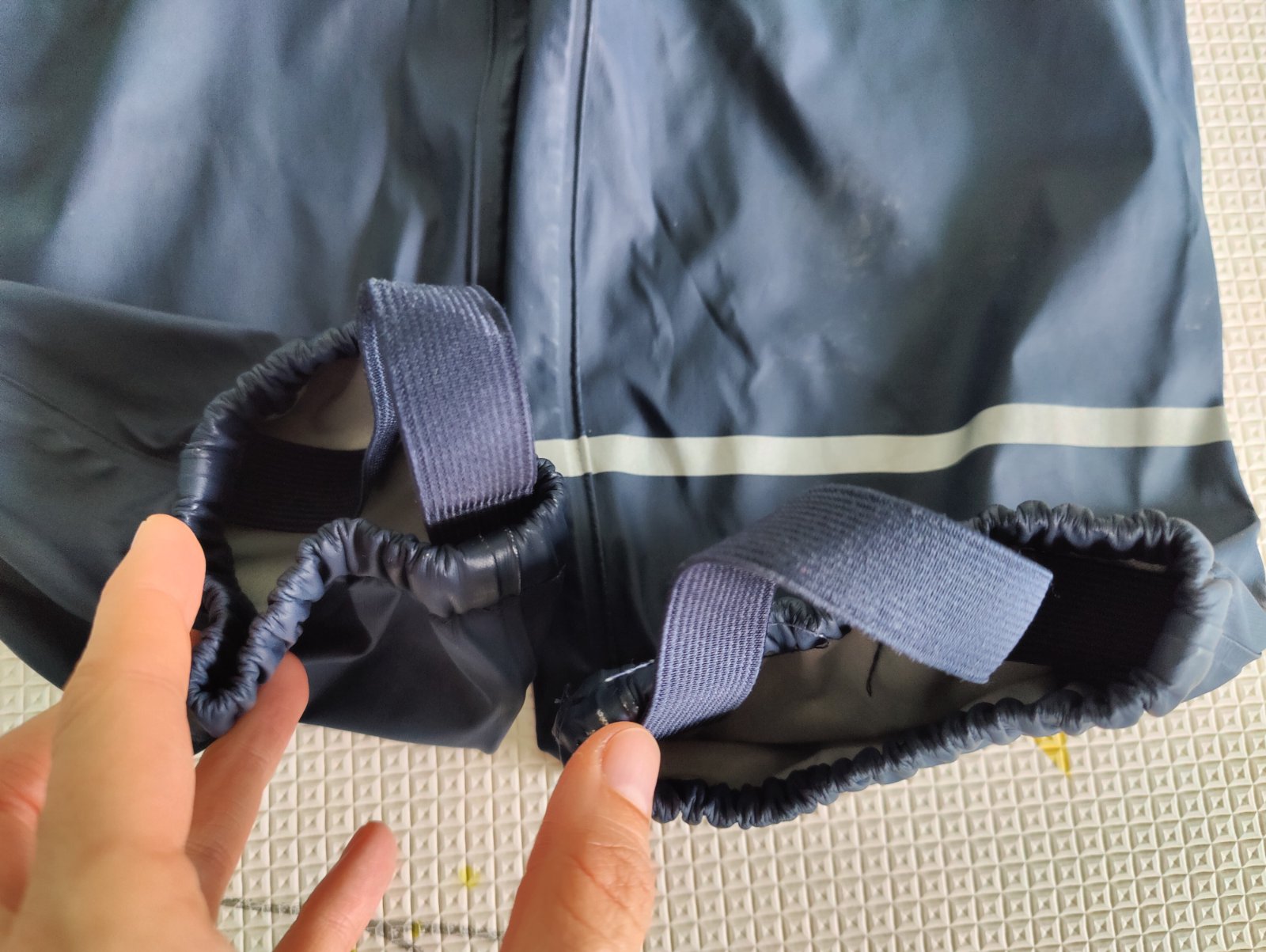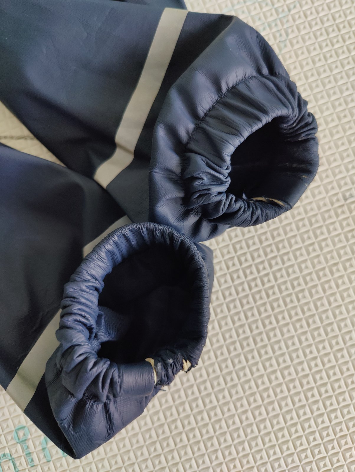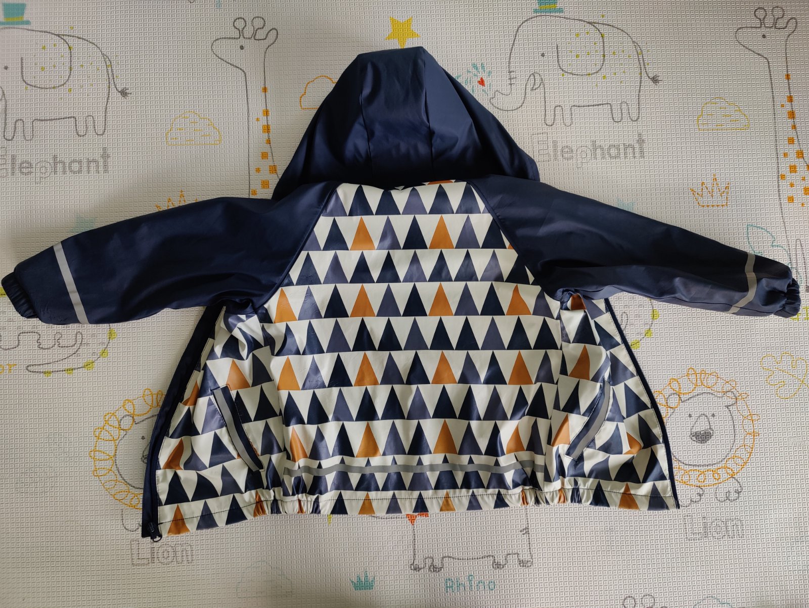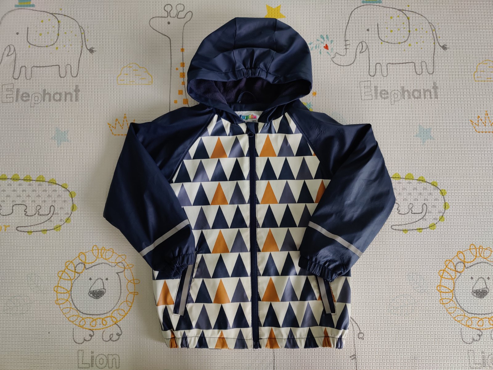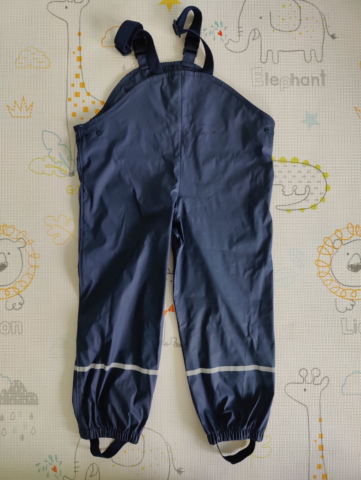 Predám chlapčenskú súpravu do dažďa značky Lupilu. Veľkosť 110/116 na 4-6 rokov. Farba tmavomodrá v kombinácii s okrovožltou a bielou. Nohavice sú nezateplené, veľmi málo používané, top stav. Bunda je zateplená fleesom, nosená, ale v peknom stave. Na manžetách rukávov je trochu popukaná vrchná pogumovaná vrstva - vidno na foto.