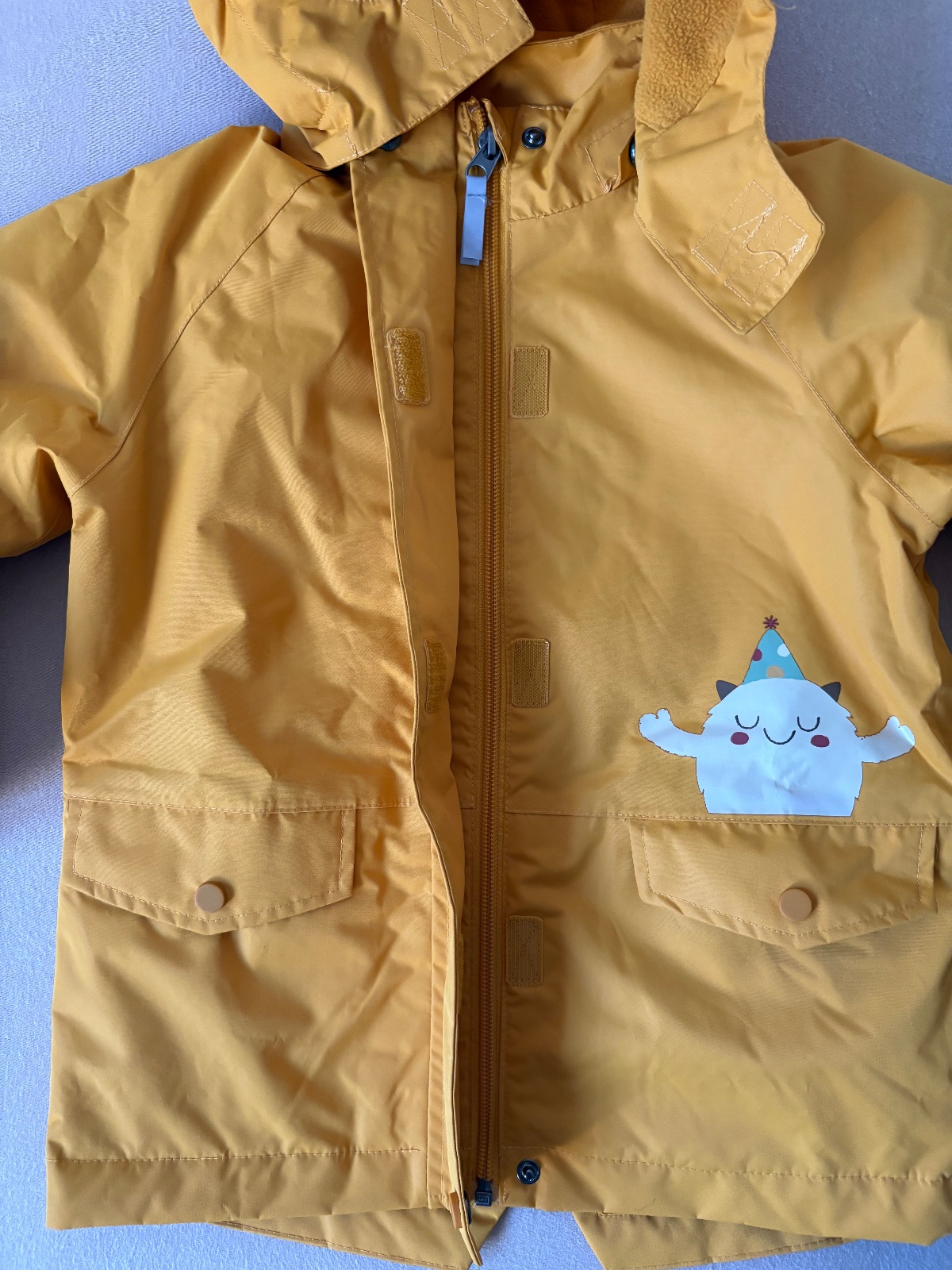 Uzasne lahka bunda do dazda s odnimatelnou vnutornou tmavomodrou vestou. S kapucnou. Nepremokava.
