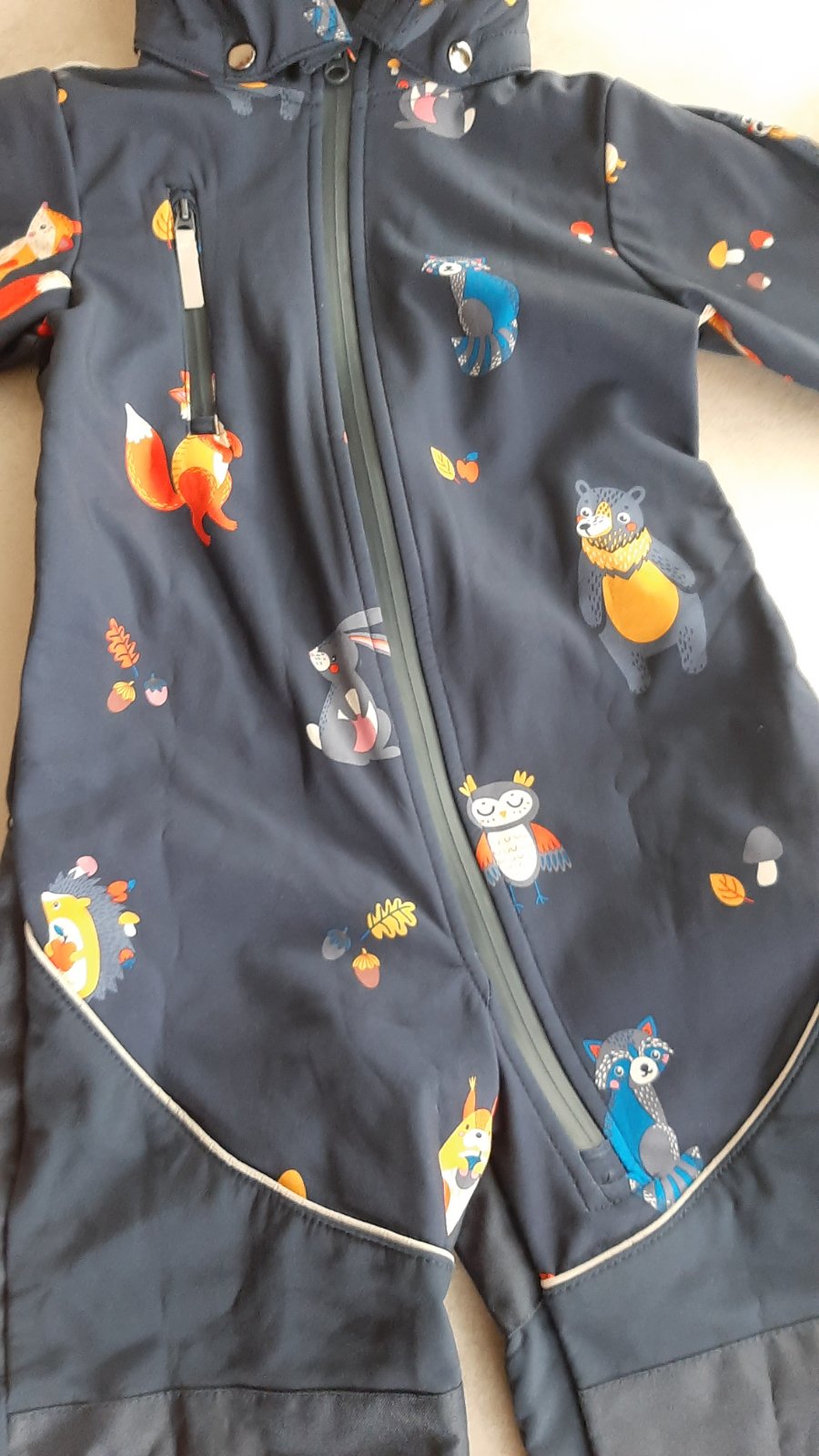 ➡️ zosilnené kolená a dupka, reflexné prvky, pekný vzor zvieratiek, jedno vrecko, podšité flisom, odnímateľná kapucňa, gumičky na spodku