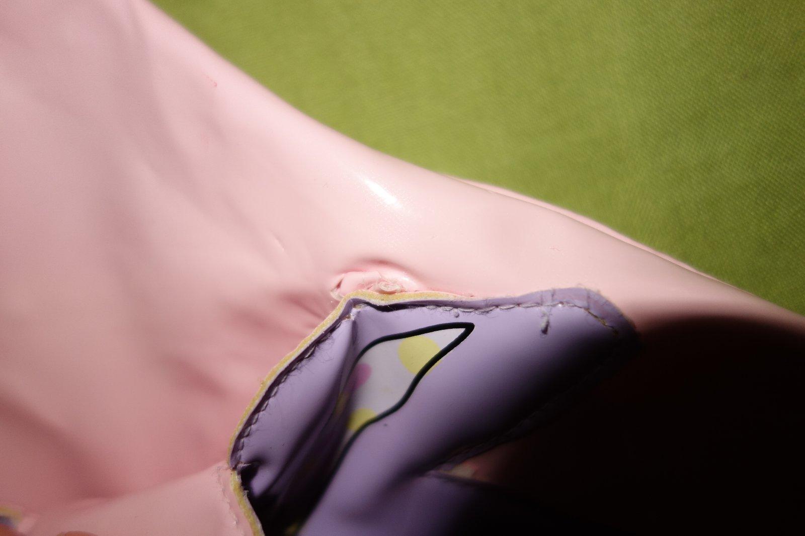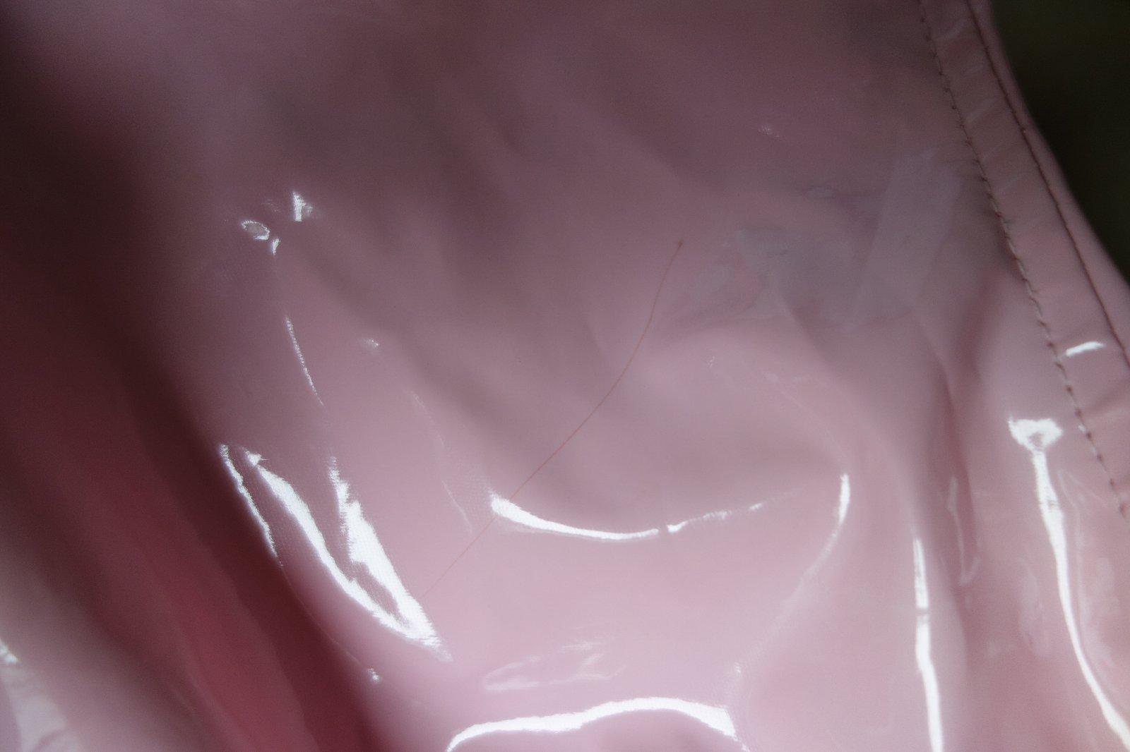 Krasny vilovy prsiplastik v dobrom stave- ma malych fliacikov vnutri, ale to pri nosnei nevidno. Pri krku pod golierom sa na malom kusku trha (vid foto- su tam dve take seknutia- to tiez pri noseni nevidno, tiez sa trha pri vrecku (vid foto), nasla som aj taku cmuhu akoby od cerveneho pera a chyba kapucna. Tiez som este nasla slabe fliaciky- akoby sa mi prisplast otlacil od niecoho ruzoveho (je ich vidno len malinko- vid foto). Celkovo ale prsiplast vyzera krasne a tie nedostatky su minimalne viditelne.