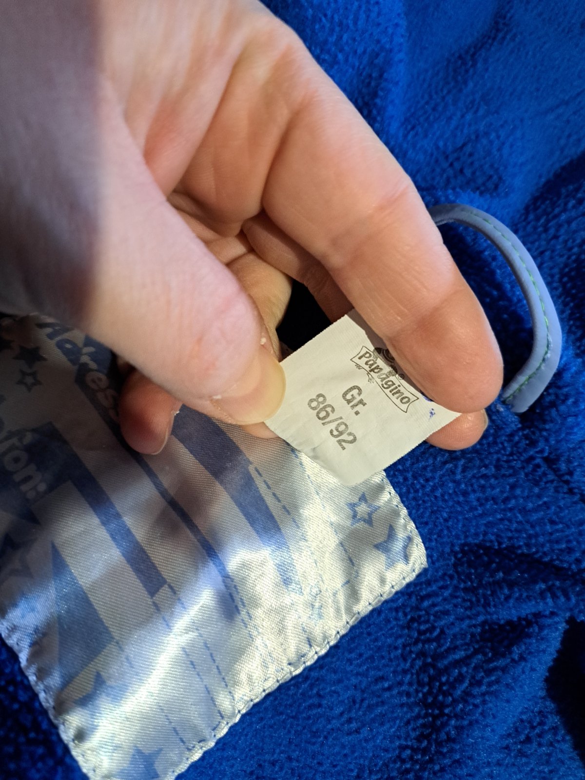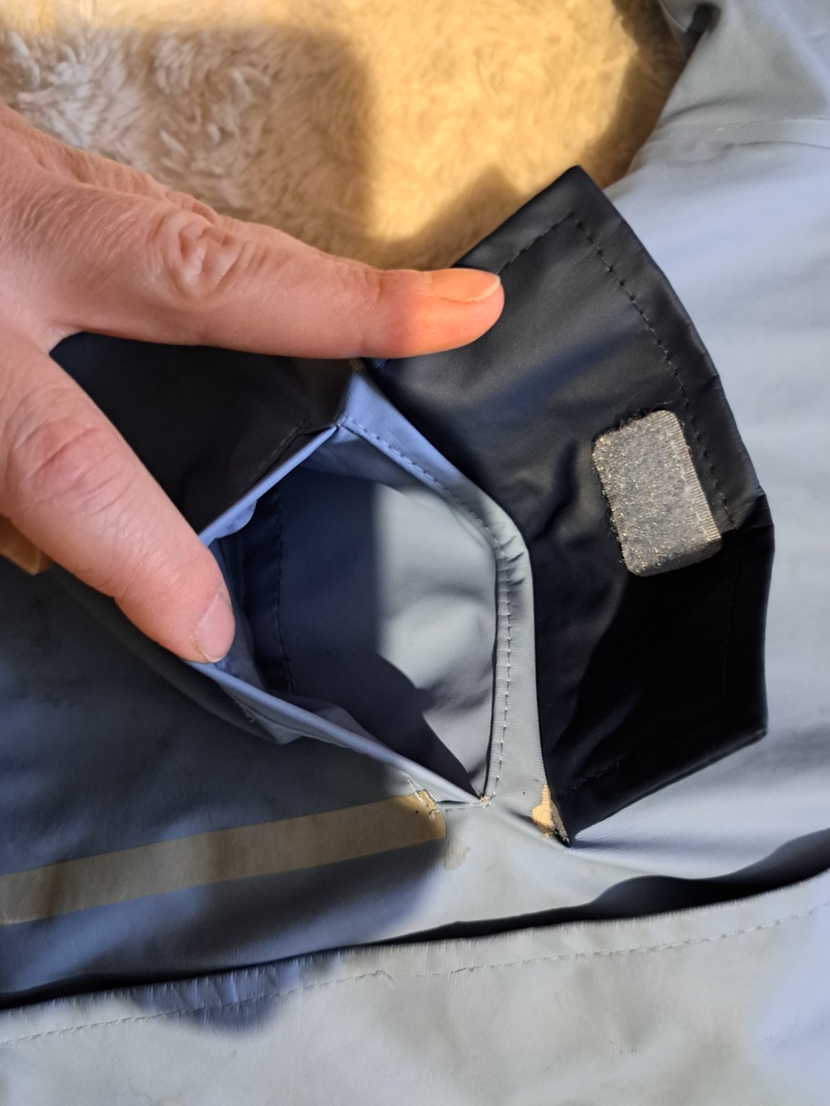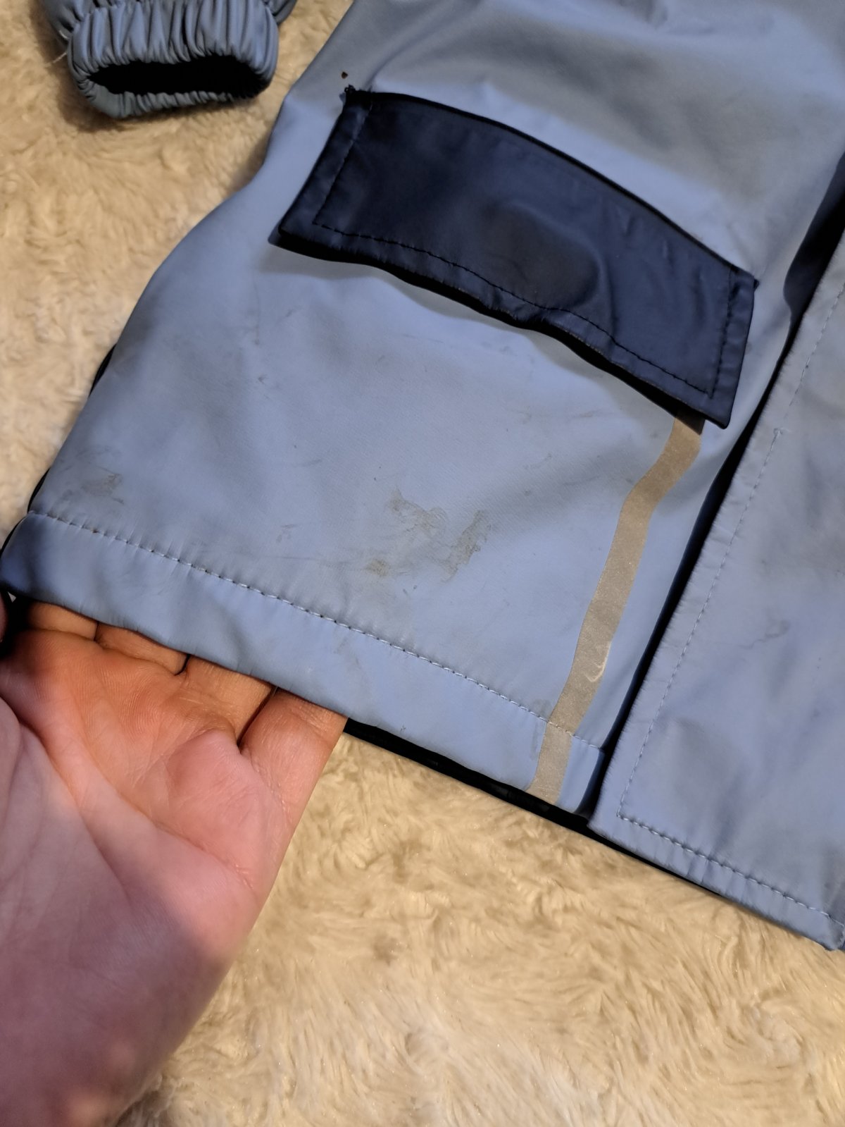 Má svoje chyby..všetko nafotené(flak na predu ..myslím že pôjde vyčistiť,predné vačky natiahnuté,a jedna strana na predu pri vačku popraskaná látka je vidno len po natiahnutí)inak je stále nositelná a pekná.S reflexnými prvkami