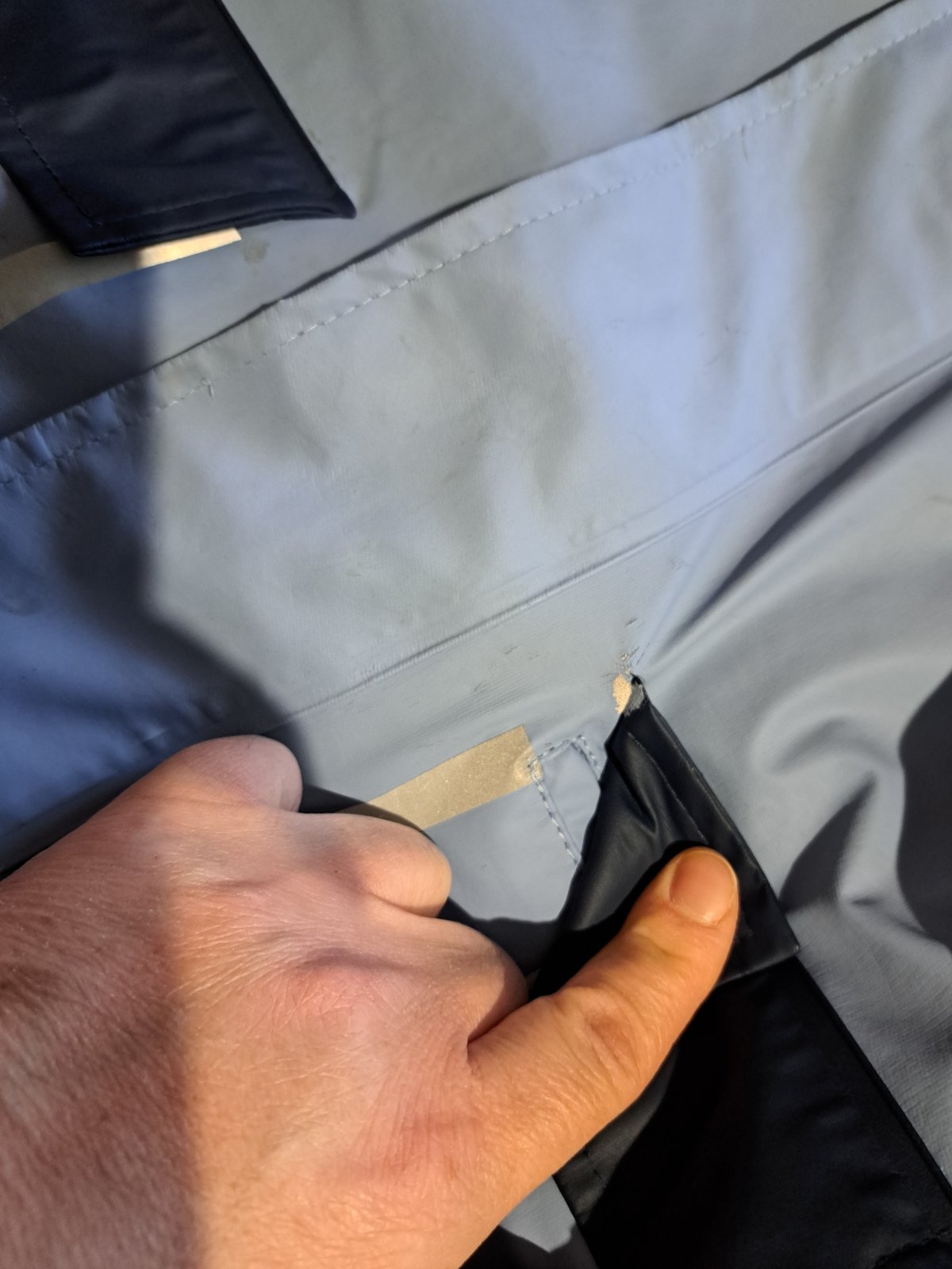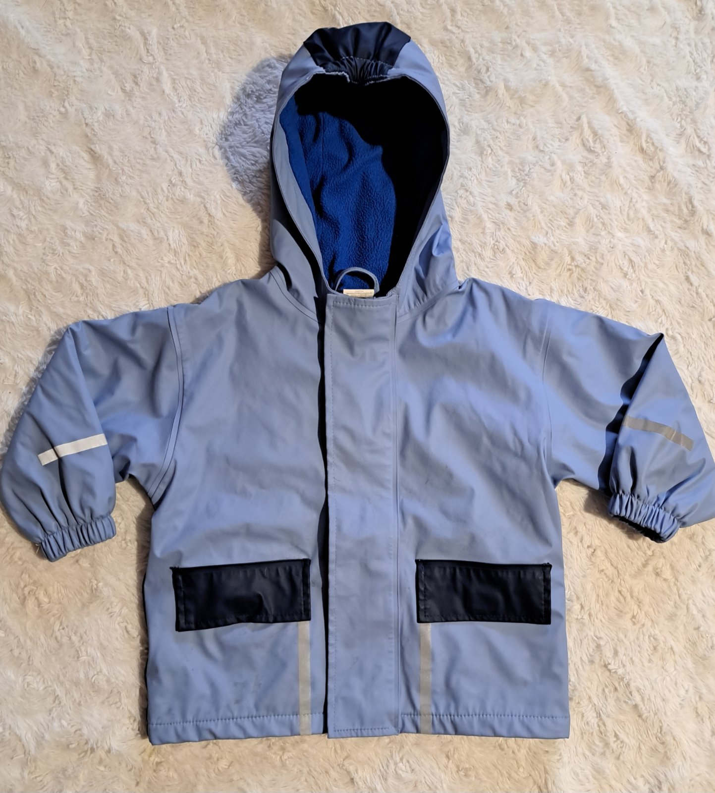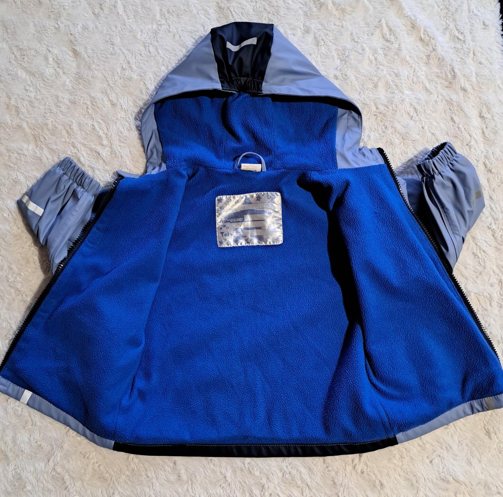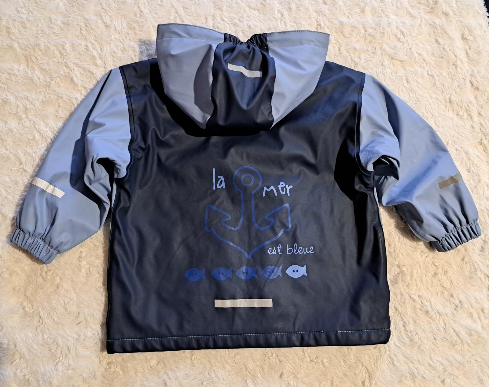 Má svoje chyby..všetko nafotené(flak na predu ..myslím že pôjde vyčistiť,predné vačky natiahnuté,a jedna strana na predu pri vačku popraskaná látka je vidno len po natiahnutí)inak je stále nositelná a pekná.S reflexnými prvkami