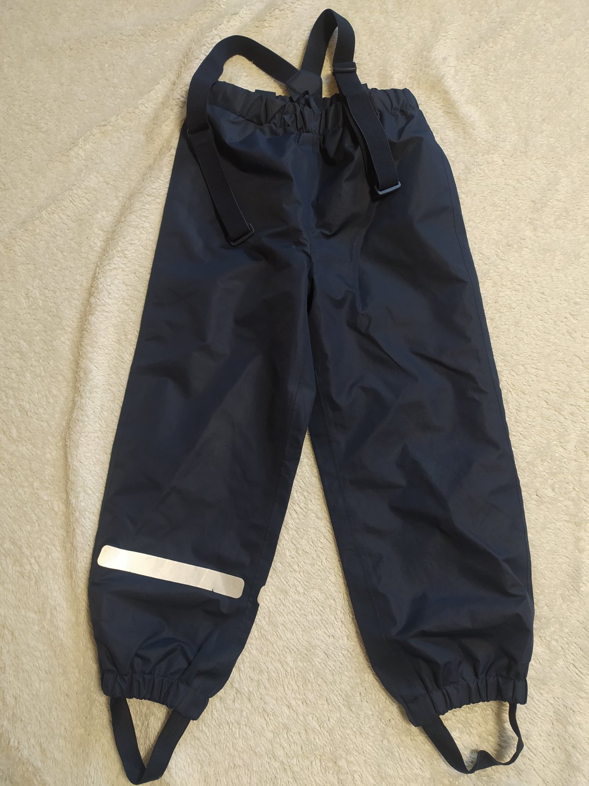 Dvojvrstvové nohavice do dažďa z Tchiba. Traky sú nastavovacie, dajú sa aj odopnúť úplne. Žiadne poškodená, nezošúchané.