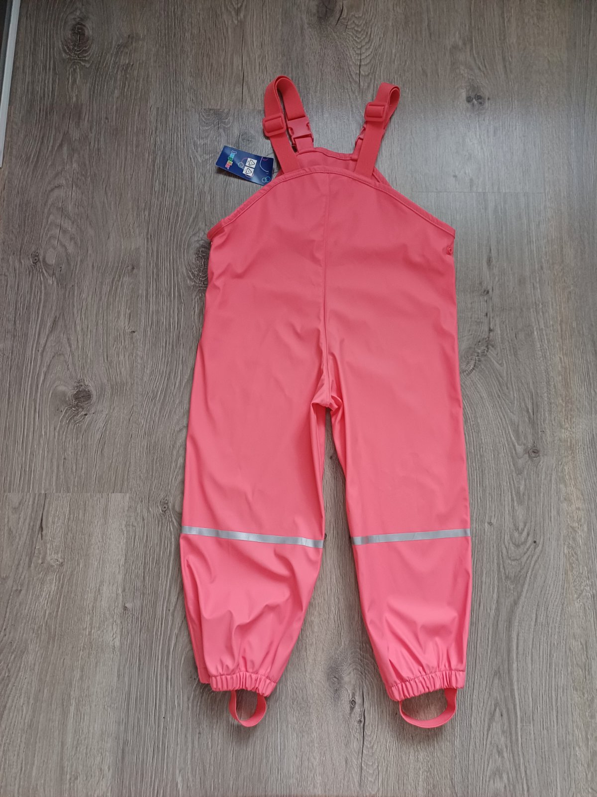 Nové, nenosené. Ešte s vysačkou. Nepremokavý materiál s reflexnymi prvkami. Nohavice majú naspodu gumový pás -pevne držia nevyhŕňajú sa. Traky na zacvaknutiu umožňujú nastaviť dĺžku a po bokoch patentné gombíky pomôžu regulovať obvodnú šírku.