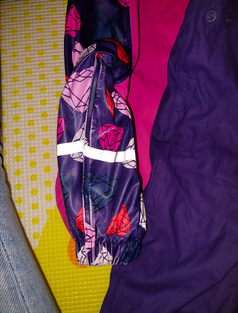 Jemne zosuchana farba z vnutornej strany rukavov. Inak ako nova suprava s reflexnymi prvkami.