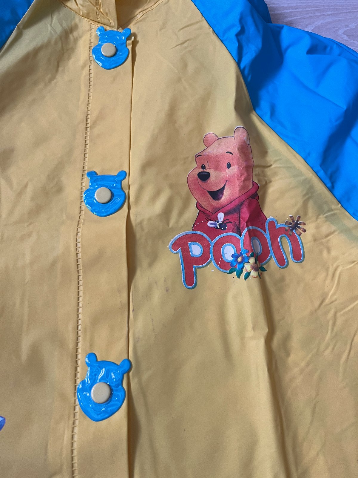 pekny prsiplast, nema poskodenia - len par svetlych ciar? (neviem to popisat co to je) pod obrazkom medvedika - je to sfotene na fotke c.2 a este asi 14cm nizsie nad tou modrou castou, ale to je vidno este menej