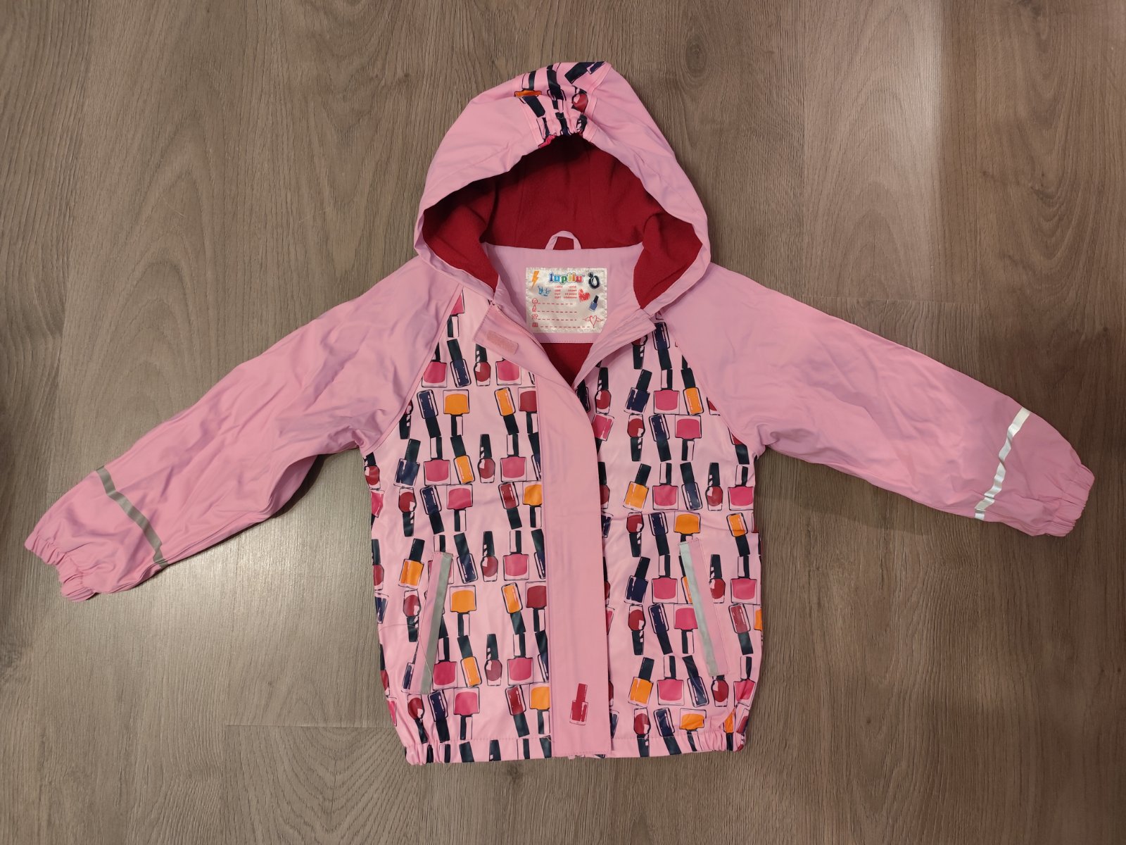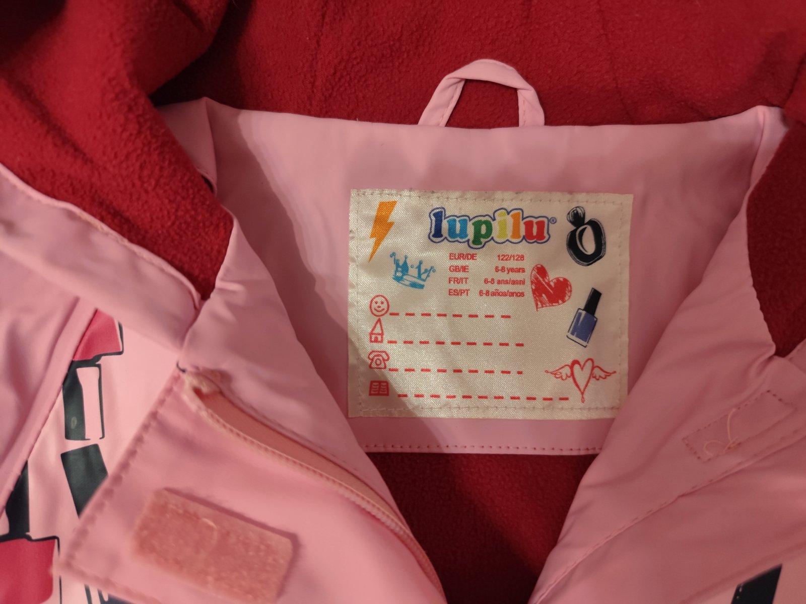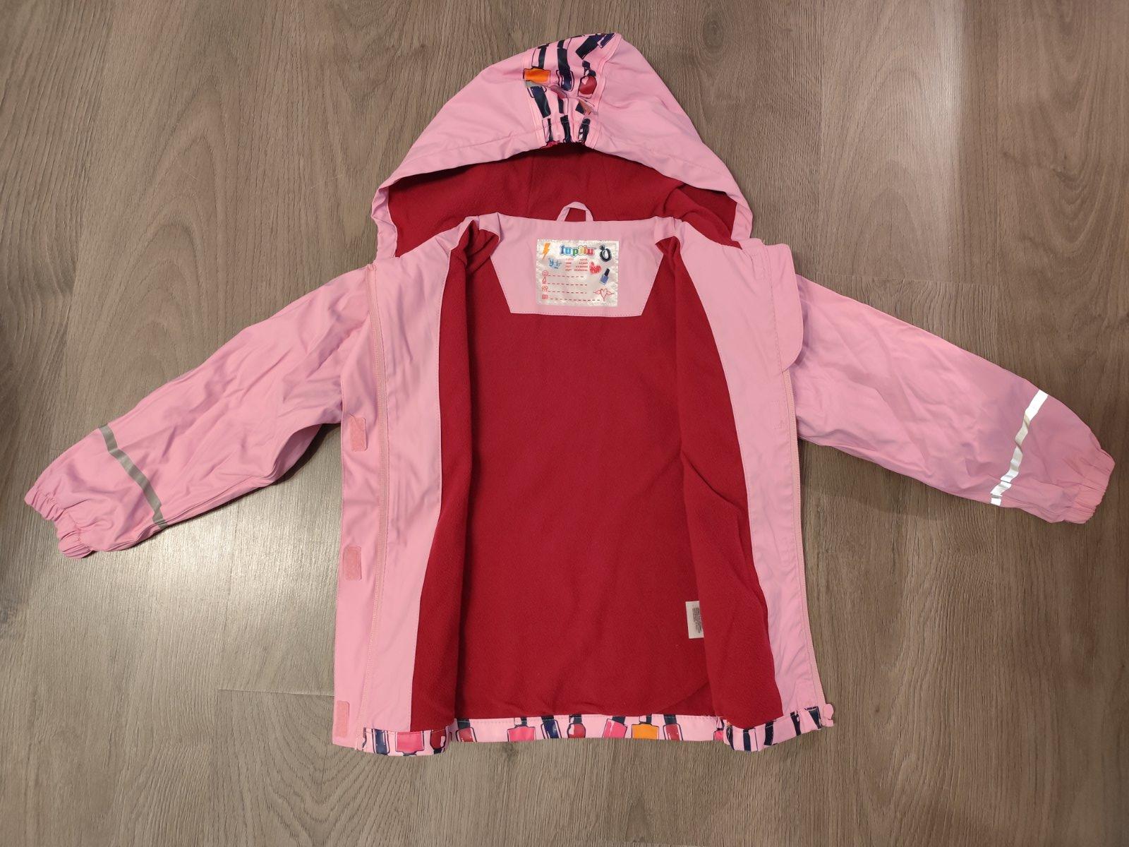 Bunda do dažďa lupilu 122/138 (6-8rokov) Stav noseny, na par miestach popraskana, hlavne pri zips pri nosení a vo