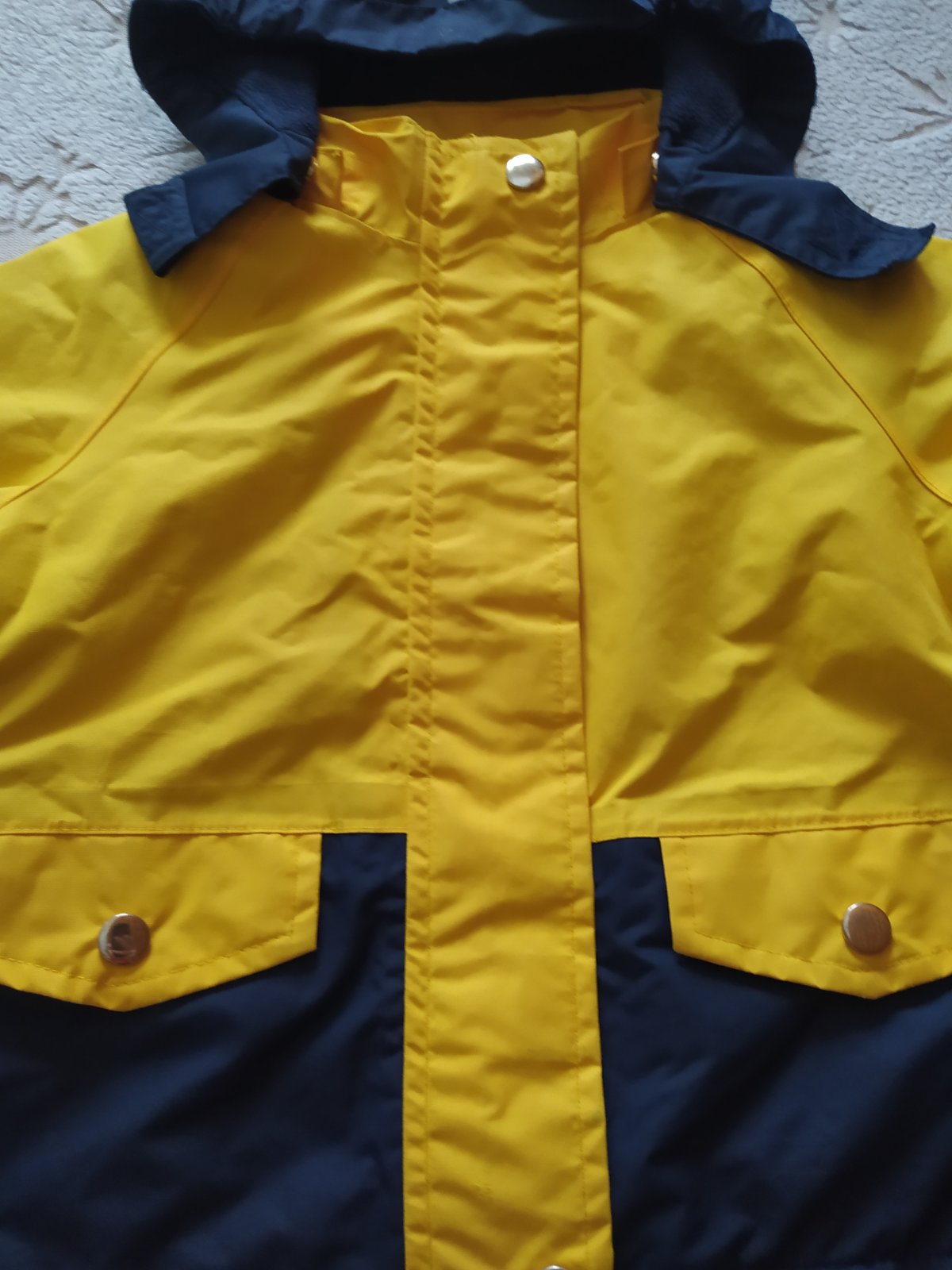 Sada bundičky a nohavíc na raky do dažďa. Nohavice top stav, s odrazkami s motívom chobotničky. Bundička biele časti sem tam zájdené, ale nič strašnéalebo zjavné inak ako úplne zblízka. Bundička ...