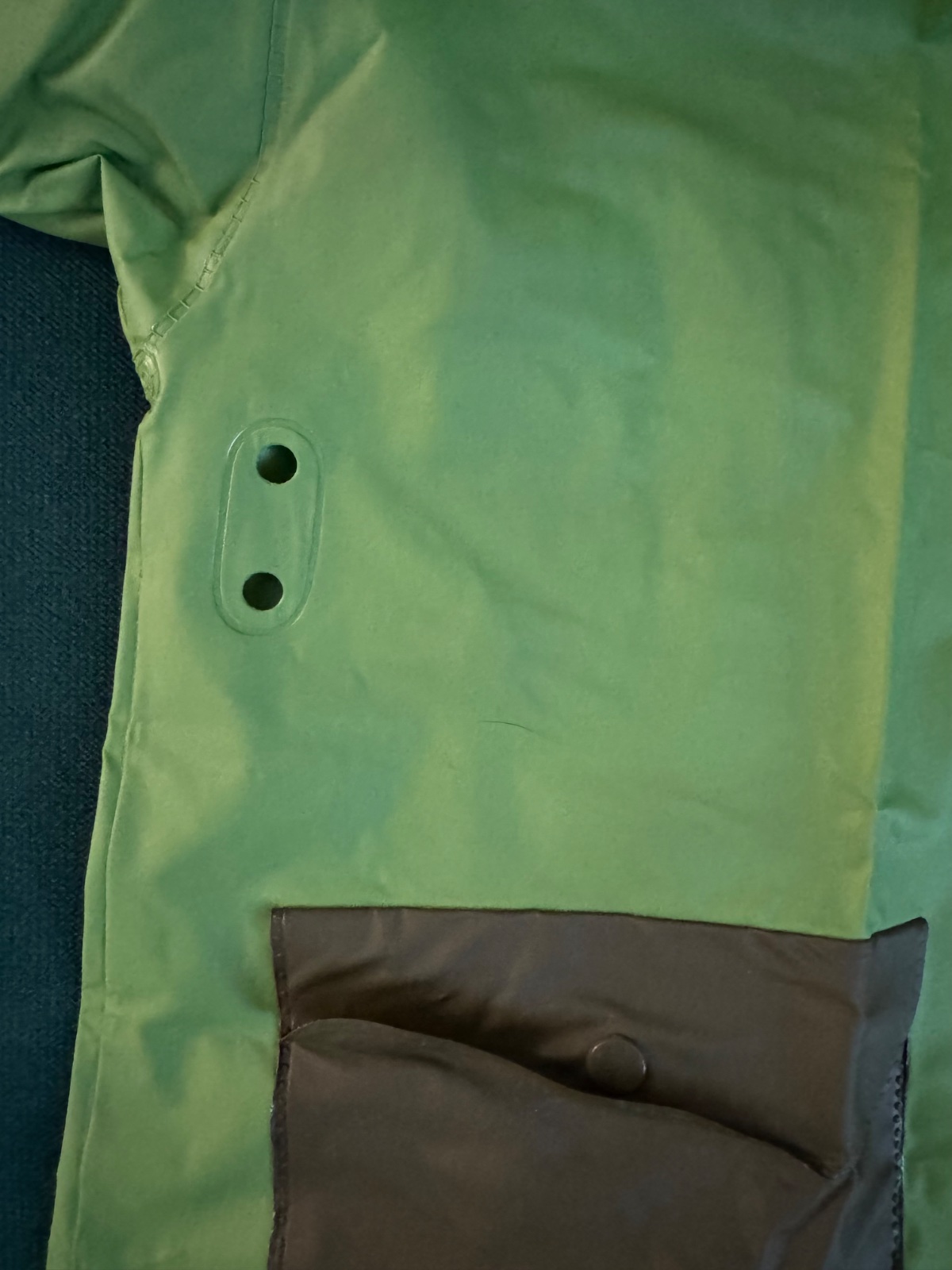 Pršiplášť má pod rukávmi vetracie otvory.
