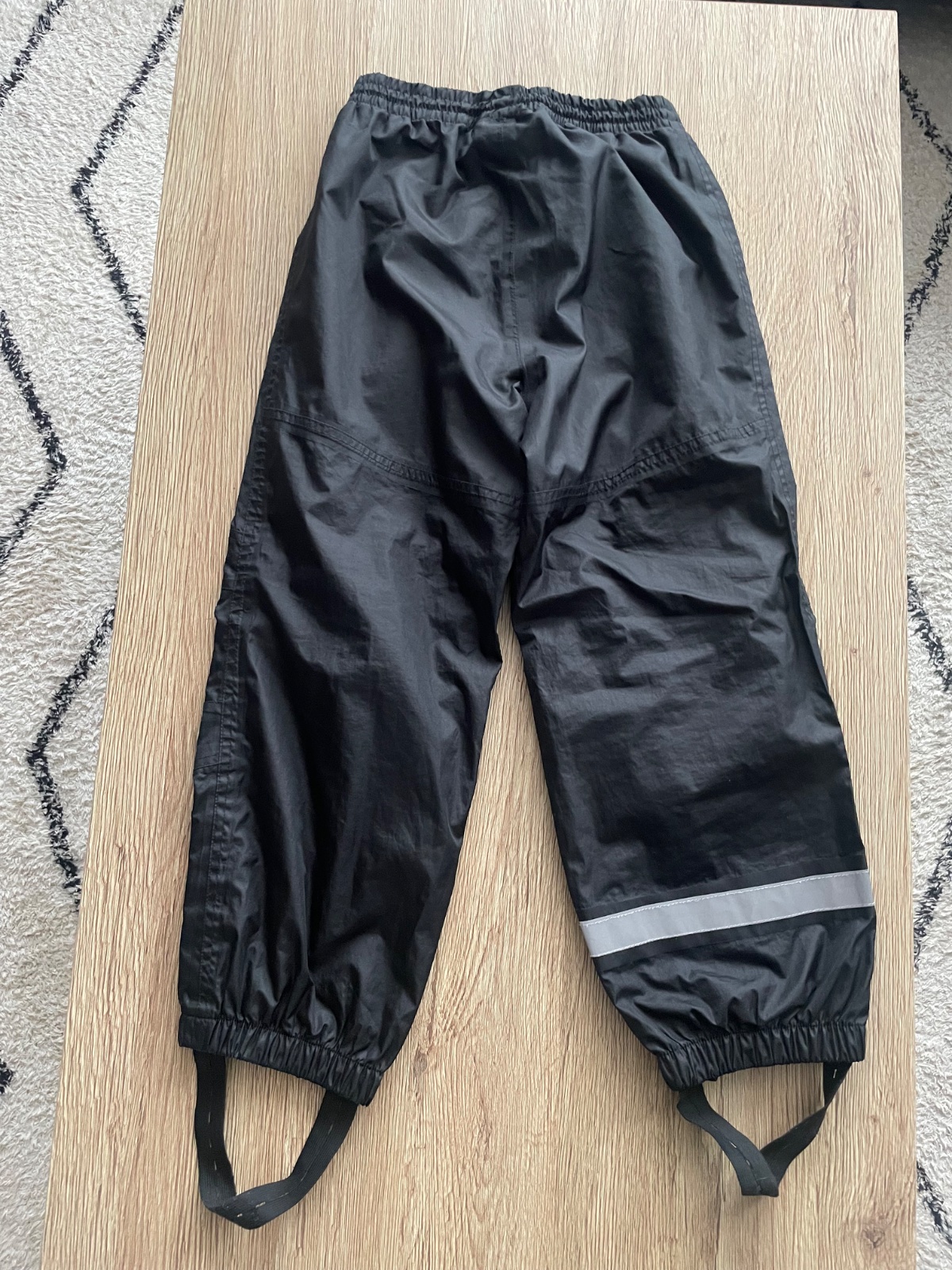 Super praktické nohavice do dažďa, velkost 134/140. Dole našité gumičky aby sa dalu natiahnuť sj cez topánky. Vo veľmi dobrom stave, bez poškodení.