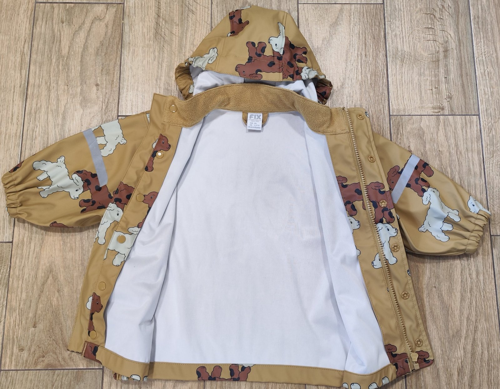 Lindex . Set do dažďa. Pršiplášť 86 ale nositeľny dlhšie. Šírka pod pazuchami 43 cm. Je nenoseny. Len skladovany. Gumáky pár krát obuté, bez vád, viď foto . V 24. 30€
