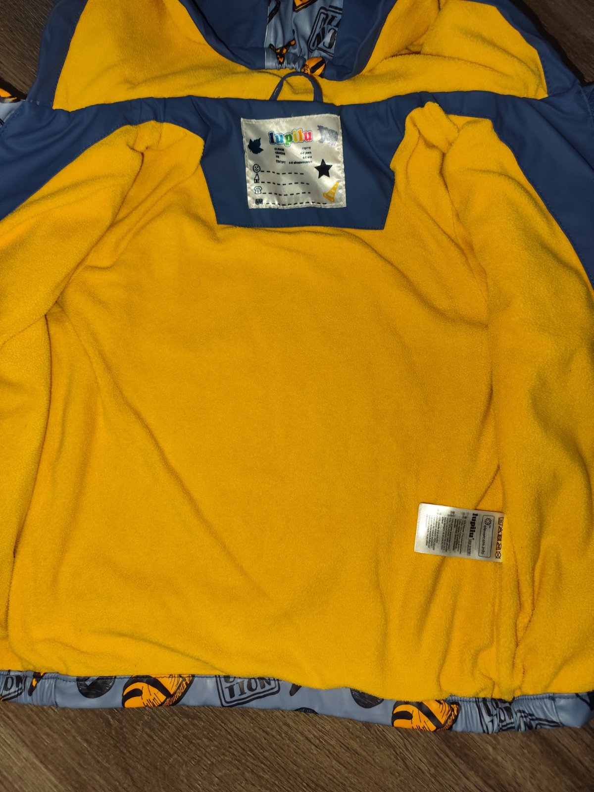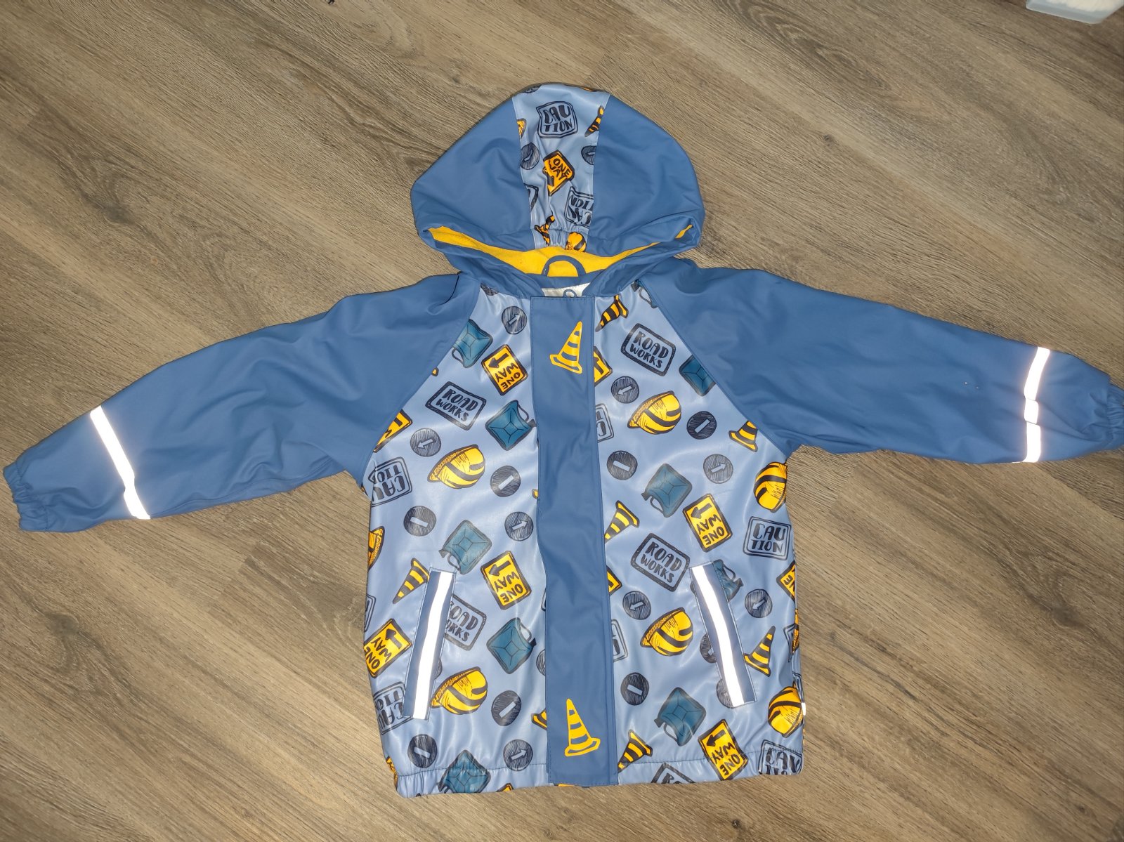 Nepremokavá bunda do dažďa pre chlapca, veľkosť na štítku uvedená 110/116 (4-6r.). Má jednu malú chybu krásy, dierku na rukáve, viď.foto. Zvnútra je zateplená, vhodná na prechodné obdobie, aj miernu zimu.