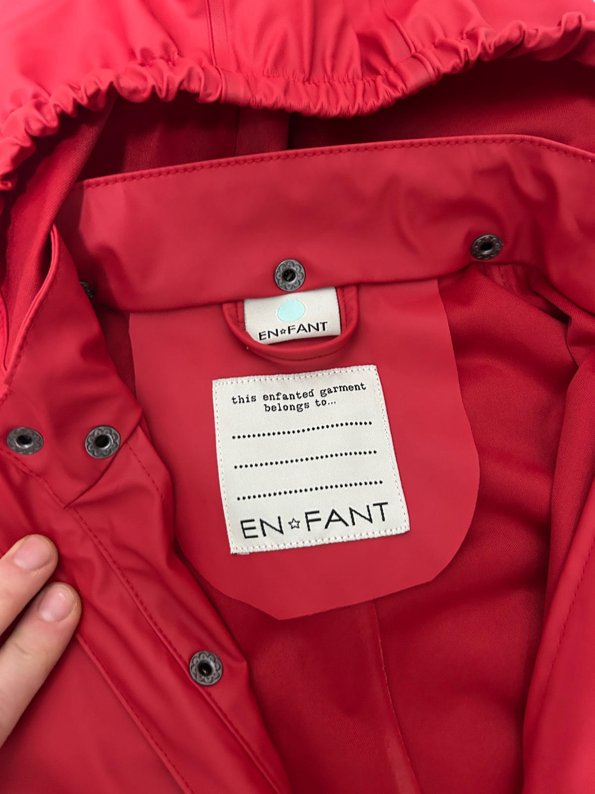 Vyskúšaný aj v lejaku. Nepremokne. Je bez poškodení. Pogumovaný povrch. Nezatepleny. Znacka En Fant je topka👍