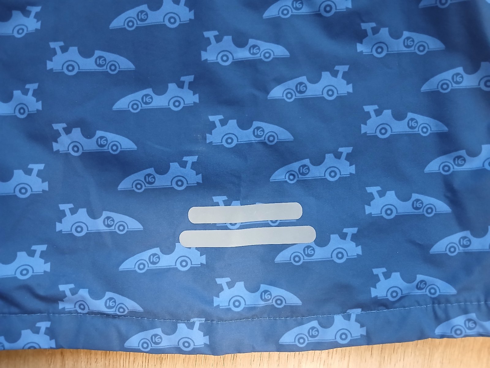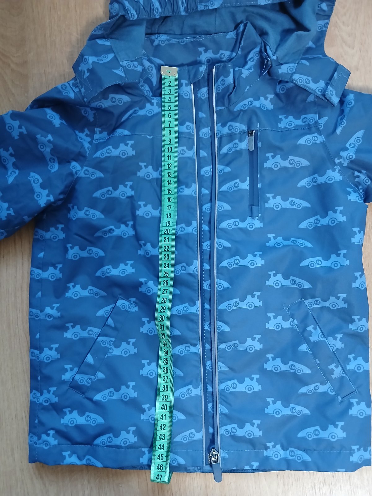 Nosená prechodná jarná/jesenná bunda s reflexnými prvkami. Kapucňa je odnímateľná. Zipsy fungujú.