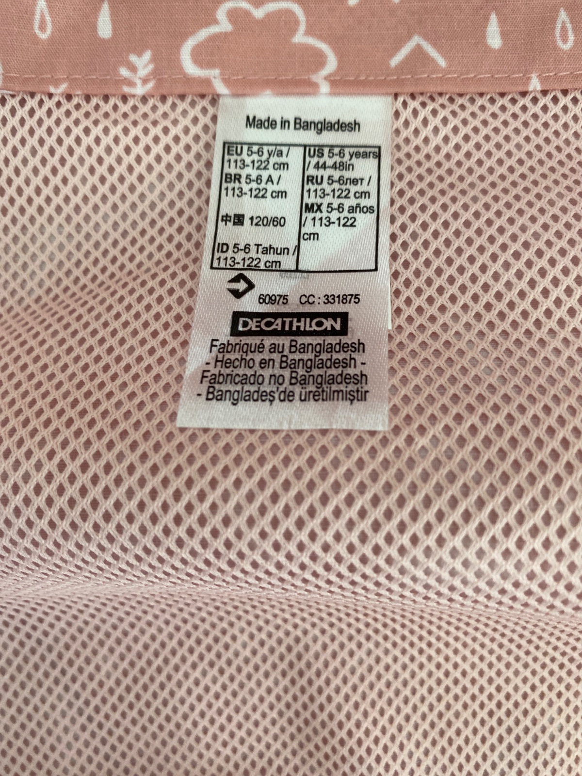 Nepoškodený pršiplášť cez hlavu na krátky zips. Veľkosť píšu 5-6 rokov.