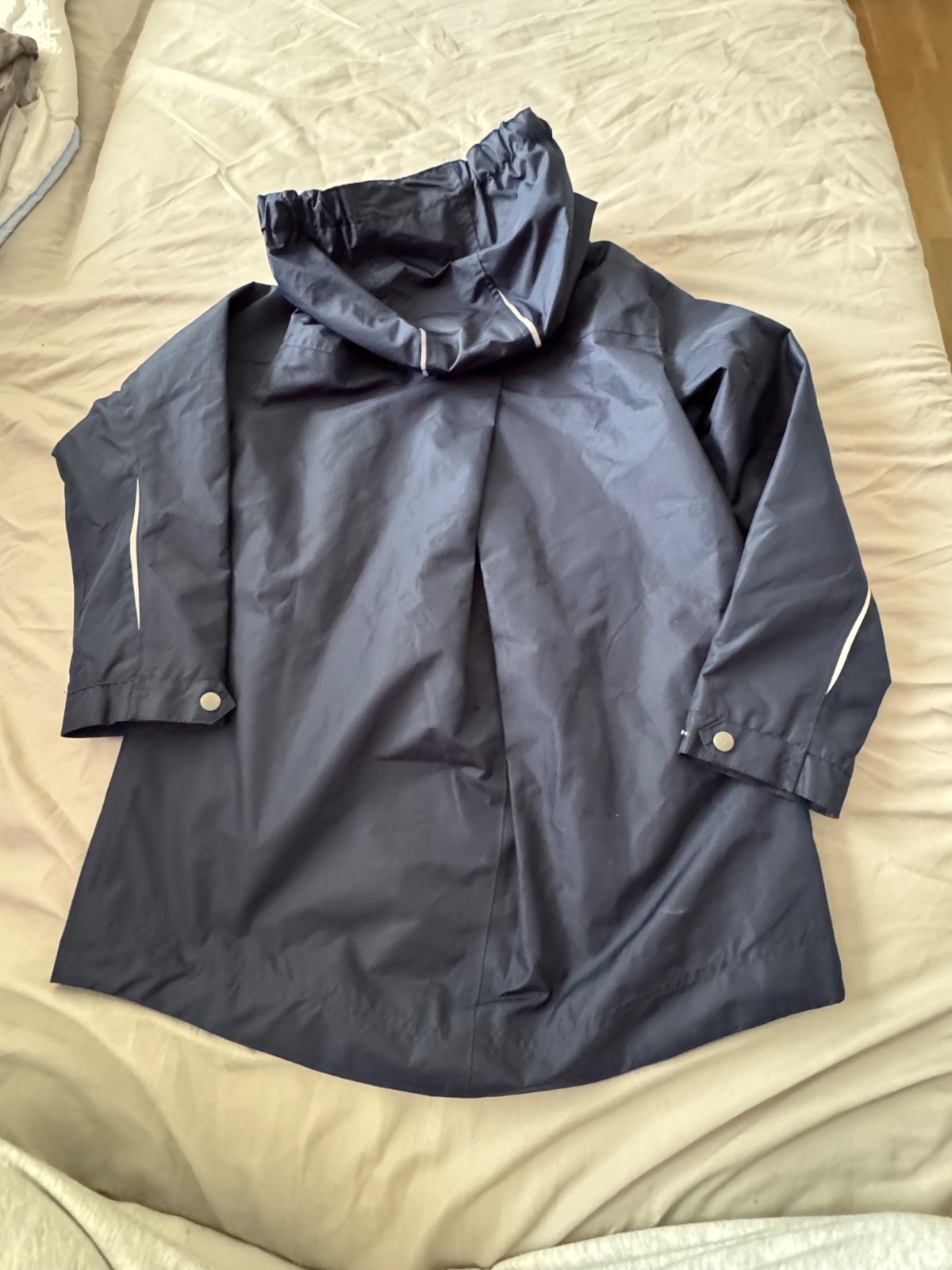 Vetrovka je pogumovaná vo výbornom stave, bez poškodenia. Dĺžka rukáva od krku 65cm.