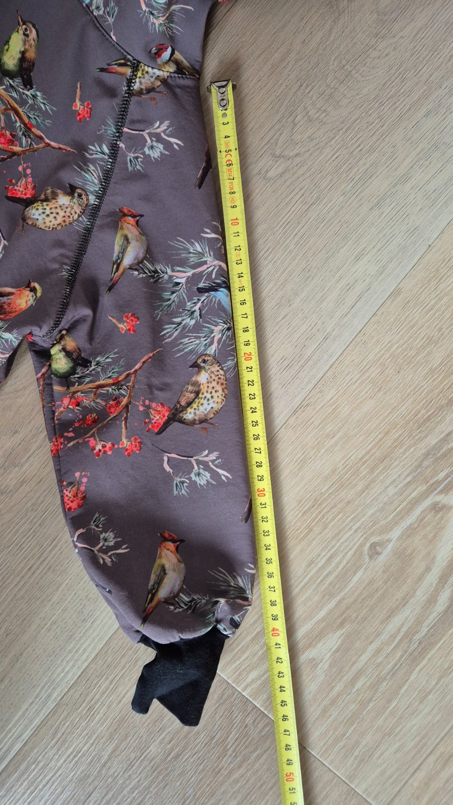 Na stitku pise 104, ale podla mna je nositelny aj skor, pridavam aj foto s metrom.
