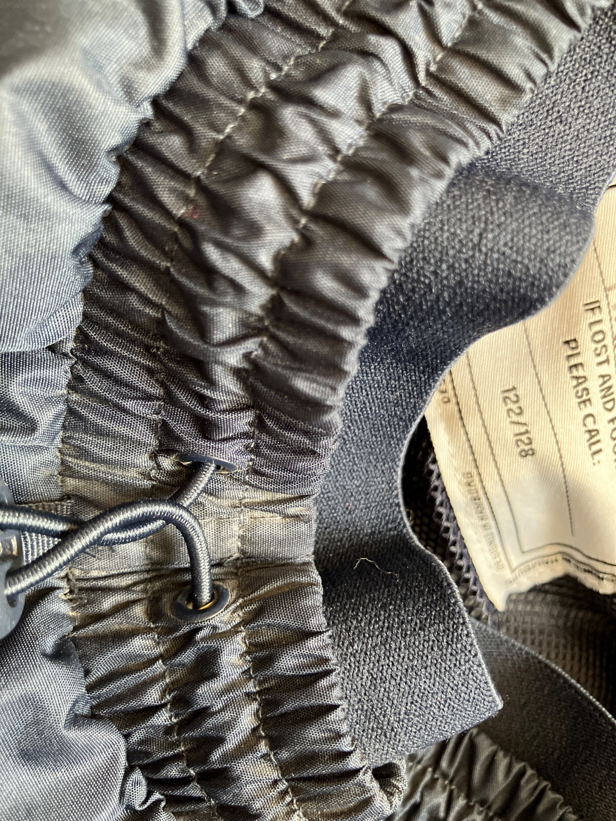 Elastický pás so zarážkou na šnúrku a elastické manžety na nohaviciach pre jednoduché obliekanie