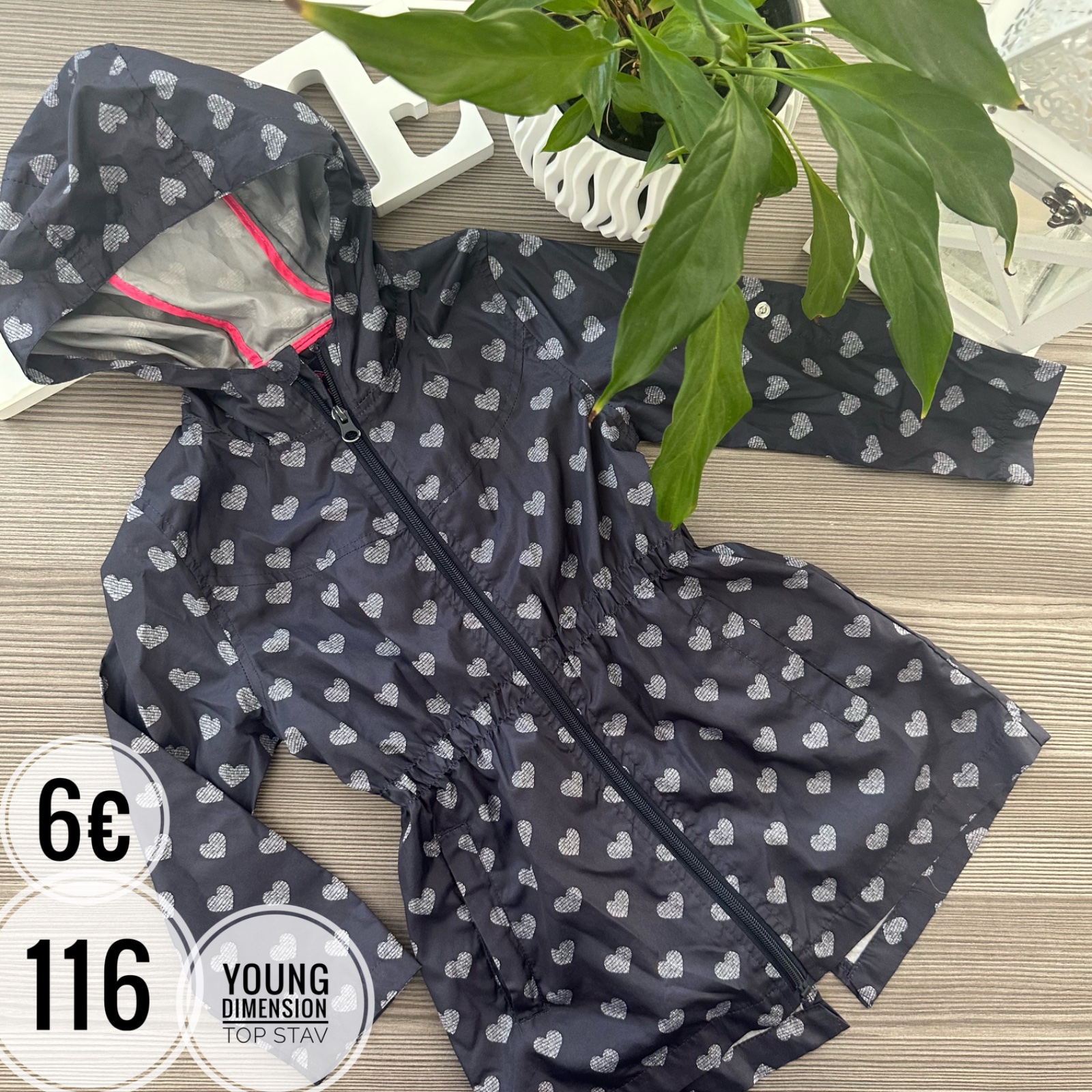 tenký pršiplášť, top stav, bez poškodení, málo nosený (nestihli sme) veľkosť 116, dĺžka 54cm, rukáv od krku 44cm, farba tmavosivá