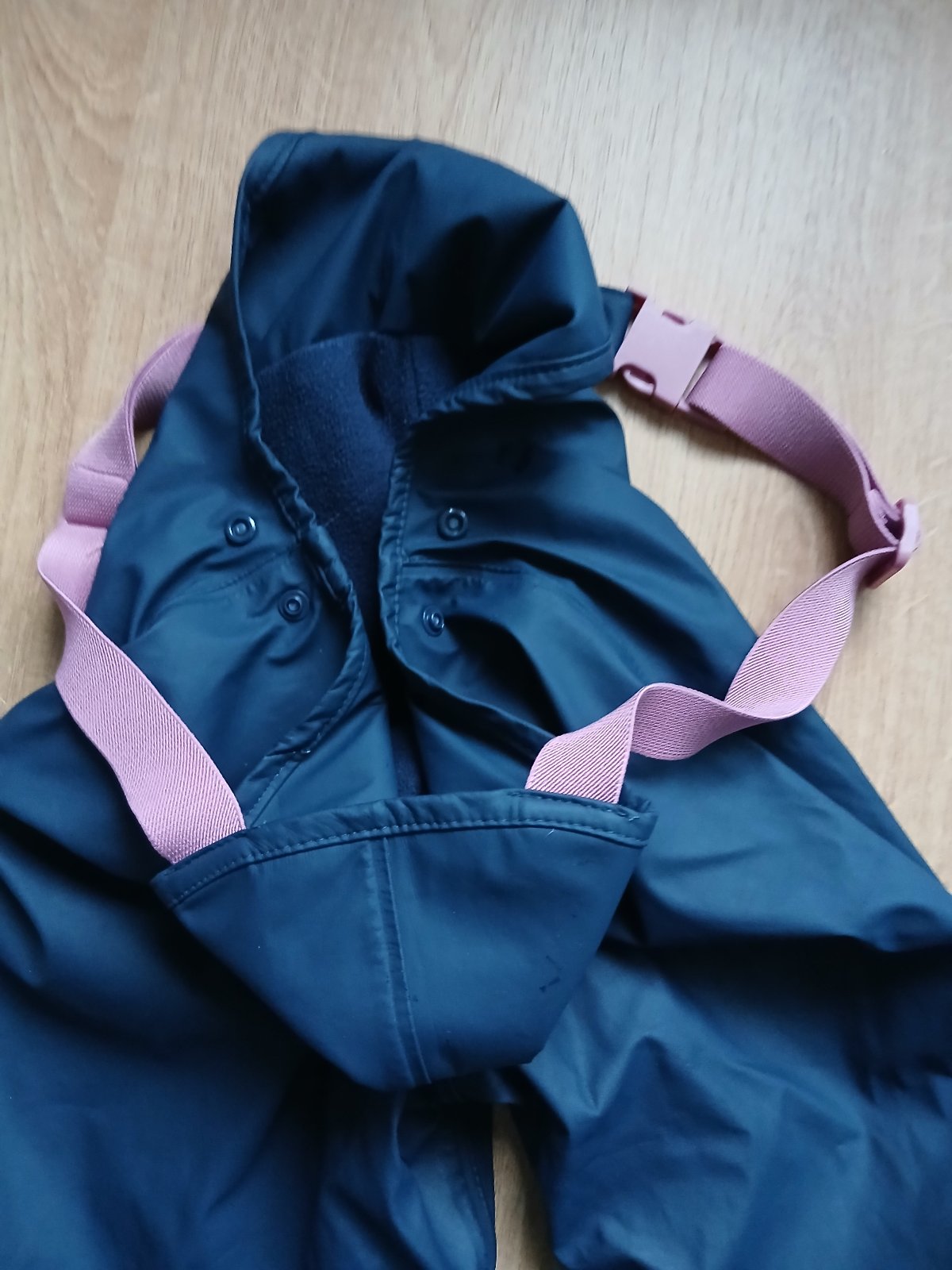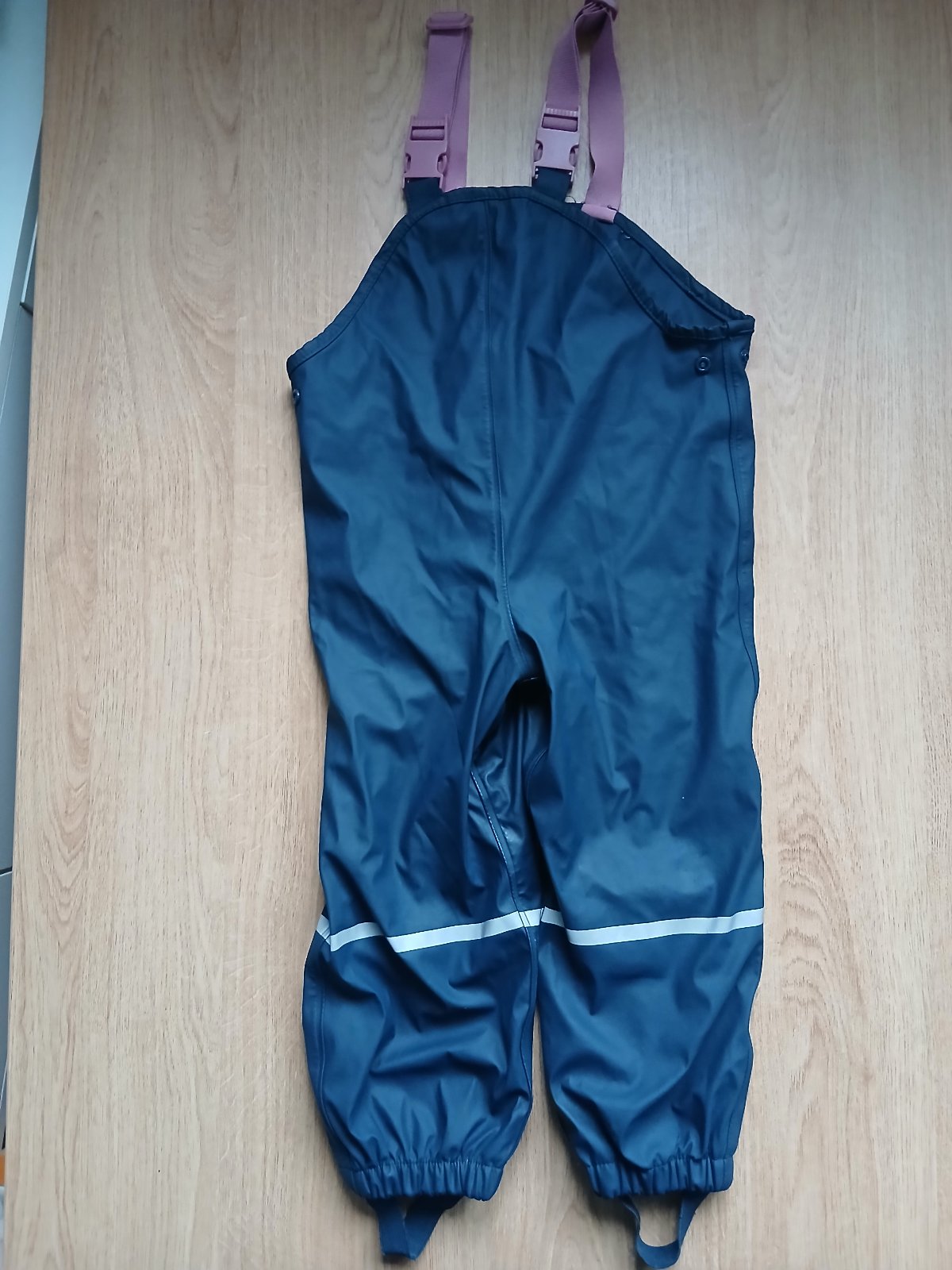 Zateplené nohavice do dažďa s reflenými prvkami a zapínaním po bokoch, veľmi dobrý stav.