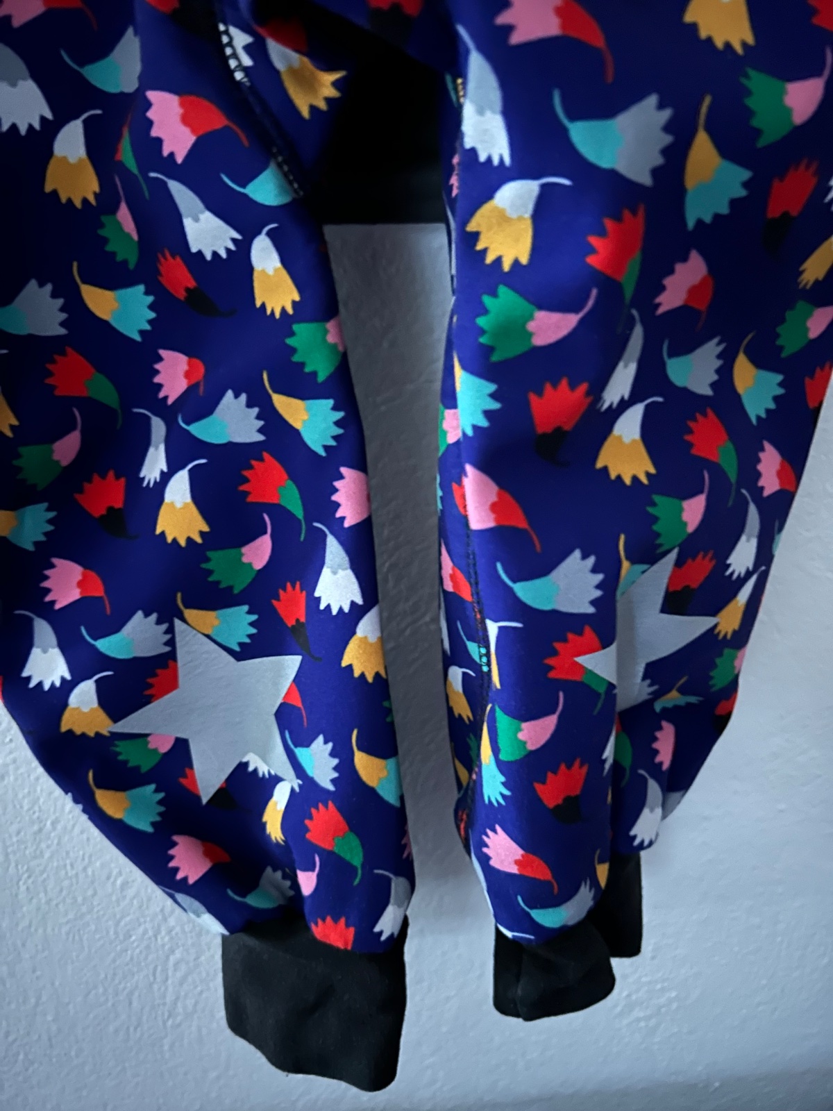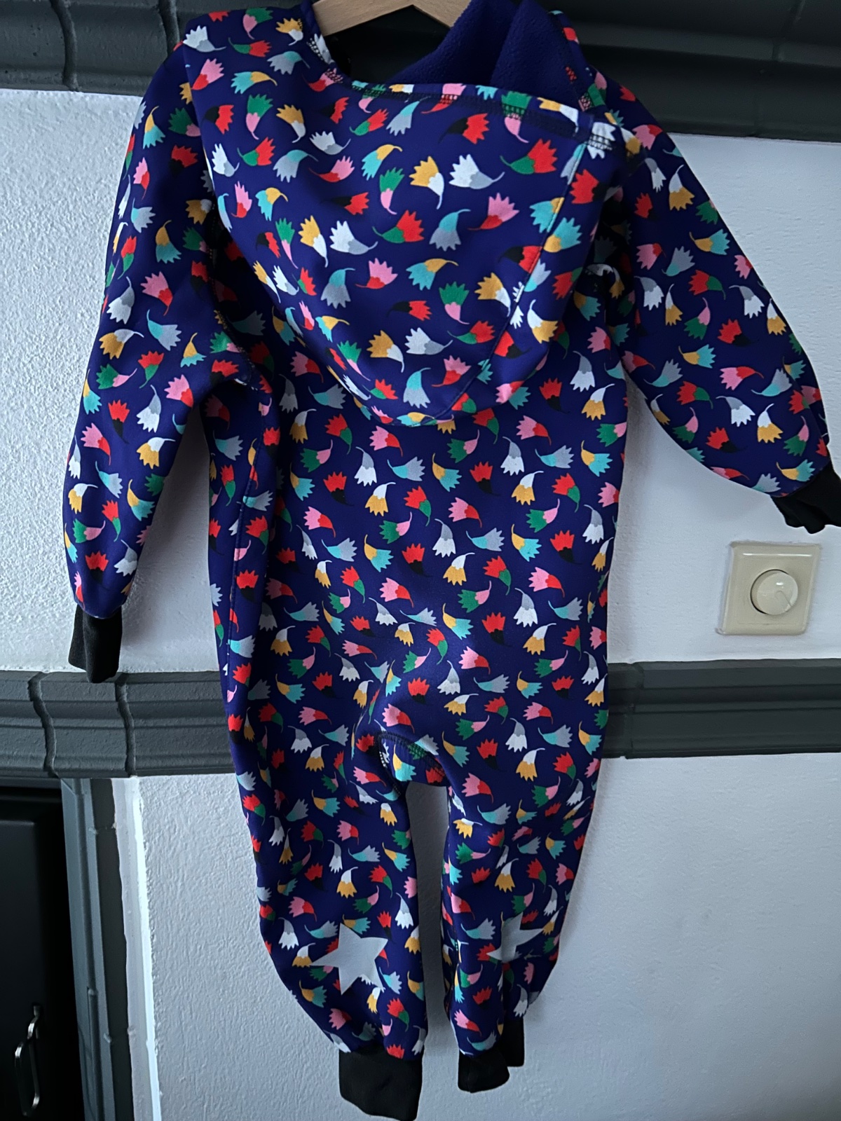 Krasny softshellovy overal zn. IELM, top stav. Vzadu su reflexne hviezdicky pre lepsiu viditelnost.