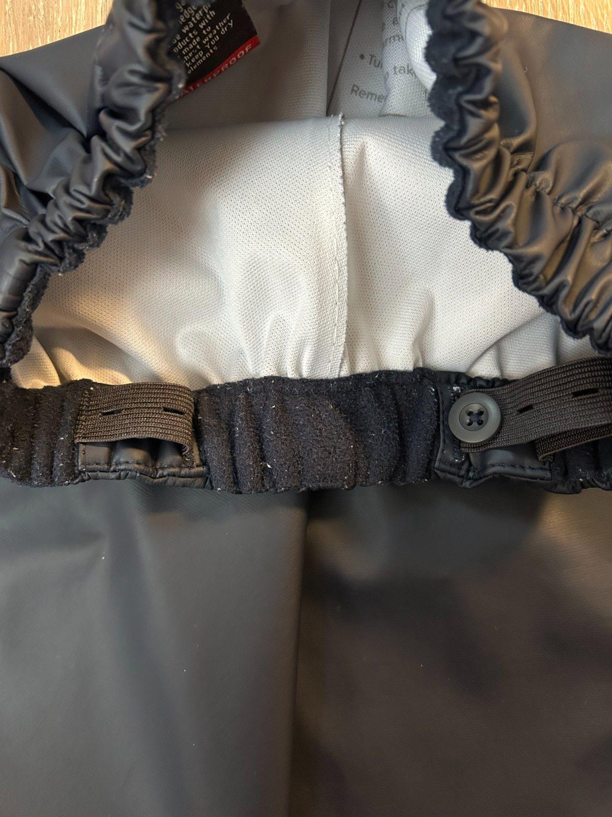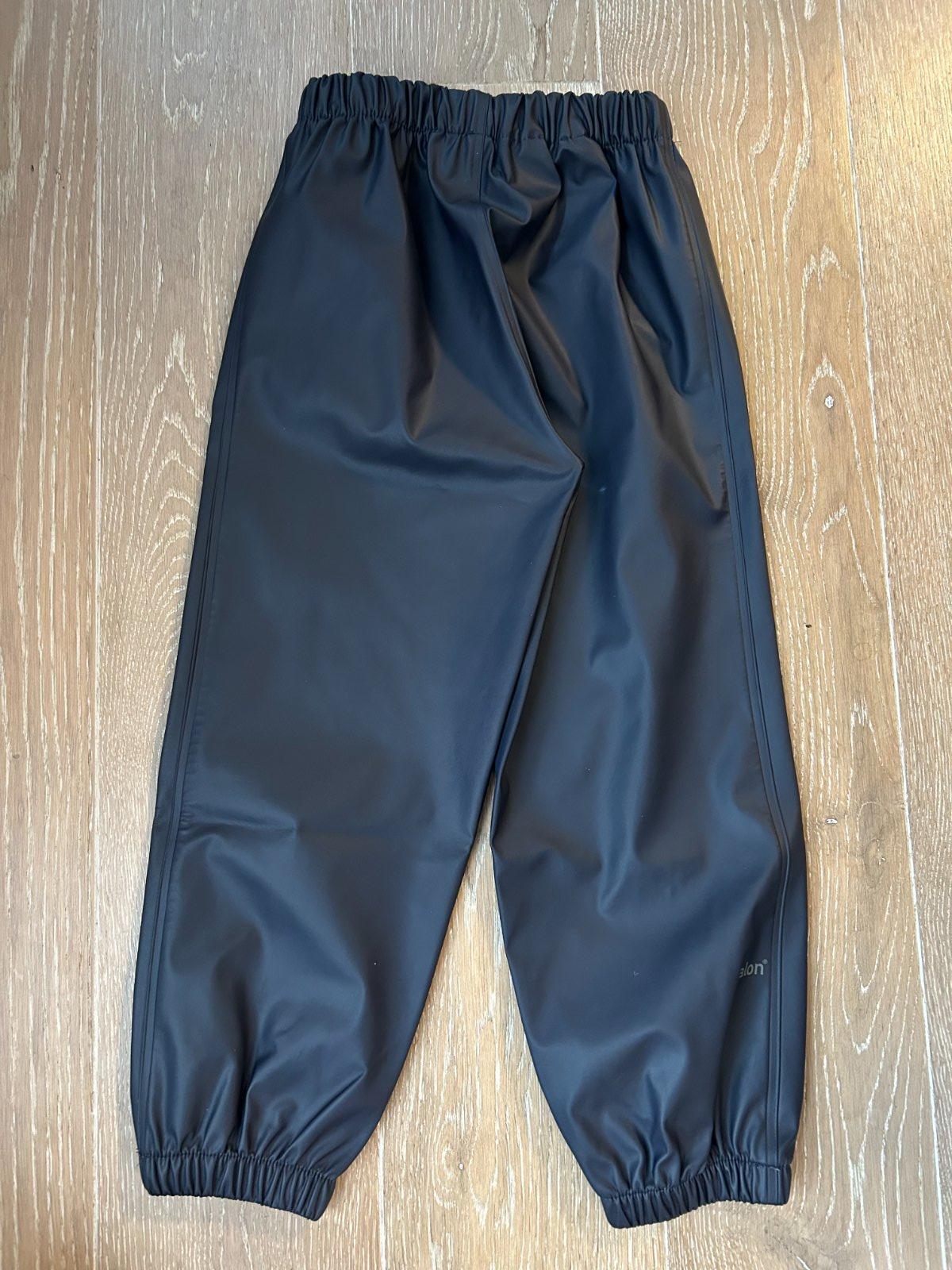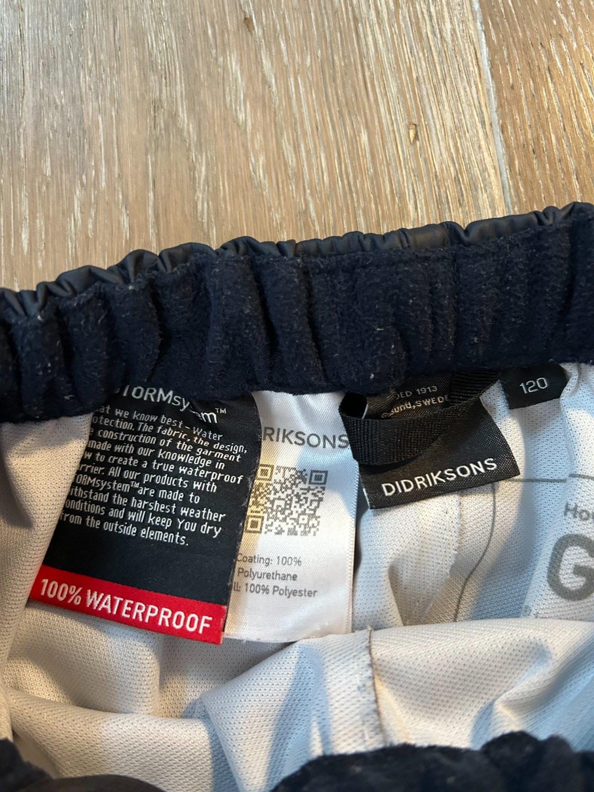 Funkčné detské nohavice zn. Didriksons, plne vetruodolné a nepremokavé so zatavenými švami pre 100 % nepremokavú konštrukciu. V páse majú mäkkú flísovú podšívku pre extra pohodlie a teplo. Pás je elastický a dá sa nastaviť zvnútra pomocou gombíkov. Nohavice majú elastické konce nohavíc, ktoré zabraňujú prenikaniu vlhkosti a nečistôt. Odev je vyrobený z materiálu Galon® bez PVC . Nohavice nemajú žiadne poškodenie.