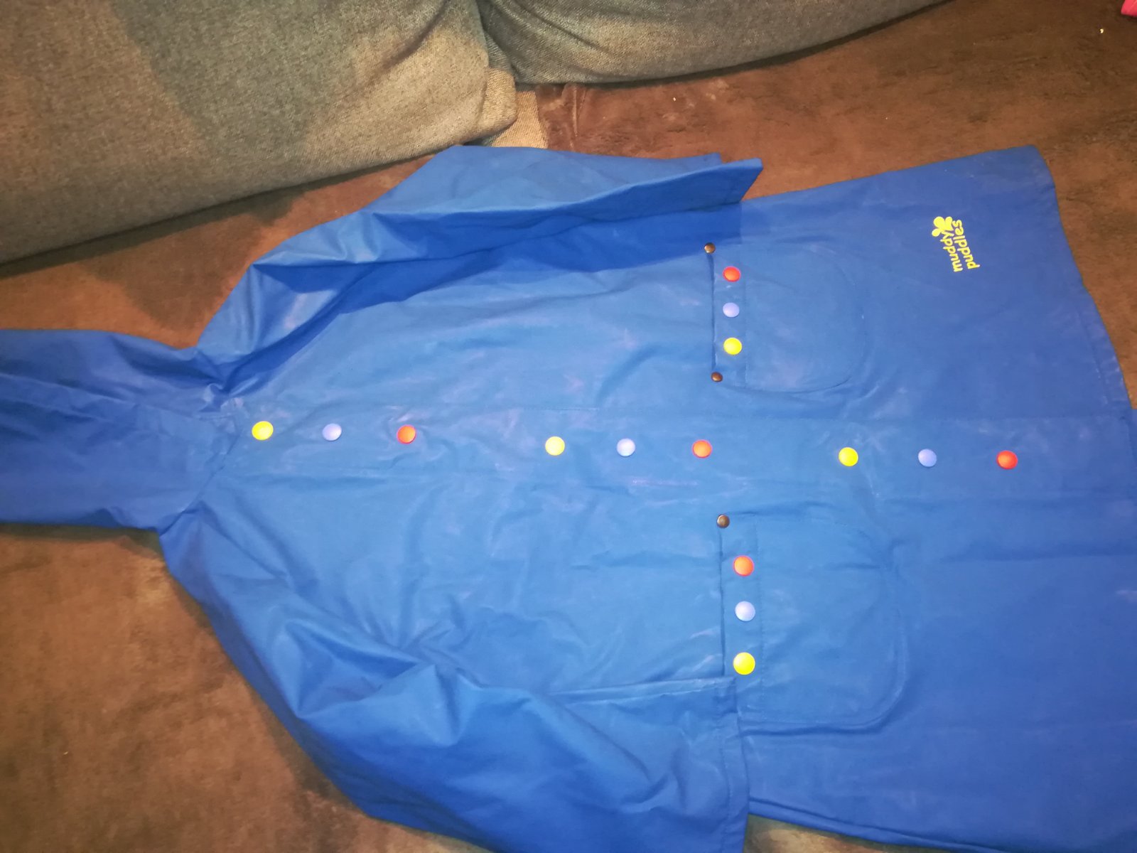 Pláštenka, kvalitnej znacky muddy puddles, veľmi pekný stav, veľkosť 105-110cm, krásna modrá farba, cena 10 eur
