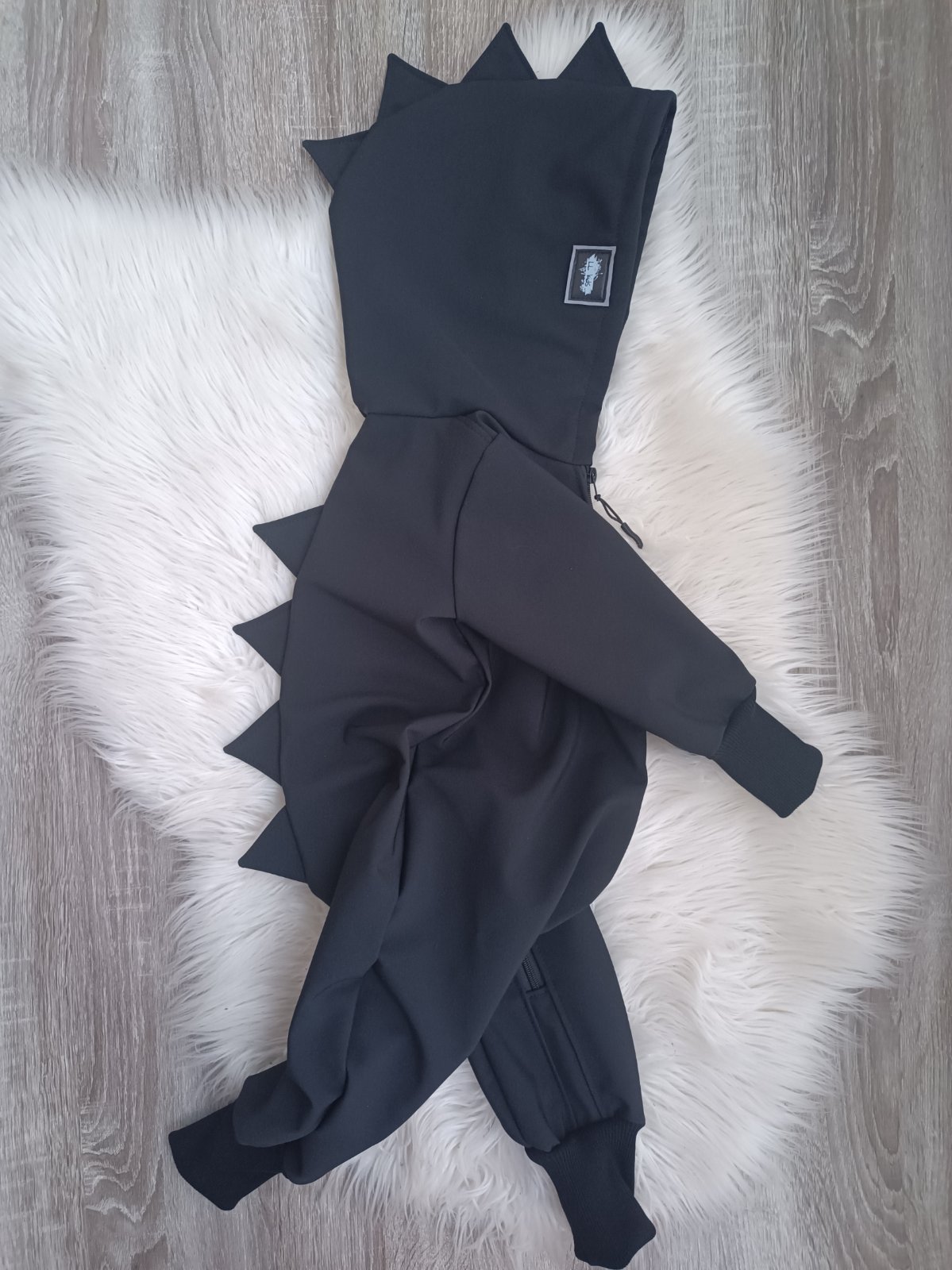 Softshellový overal s dino ostňami na kapucni a chrbte, pre všetkých milovníkov dinosaurov 🦖🦕