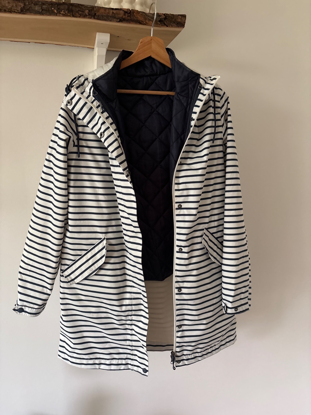 Uzasne lahka bunda do dazda s odnimatelnou vnutornou tmavomodrou vestou. S kapucnou. Nepremokava.