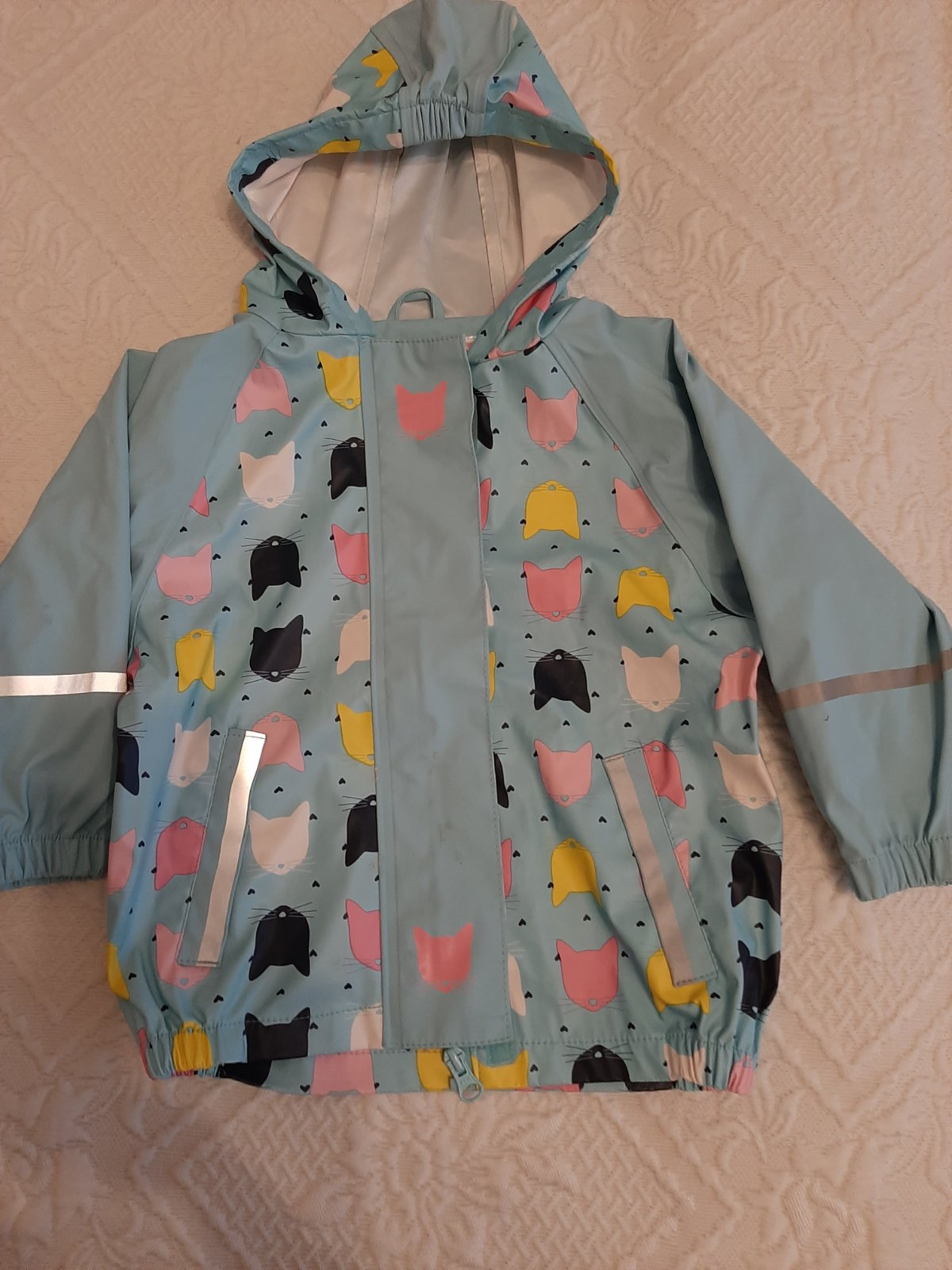 Dievčenská bundička do dažďa, nosená, zachovalá, plne funkčná. Veľkosť 86/92, na 12-24 mesiacov