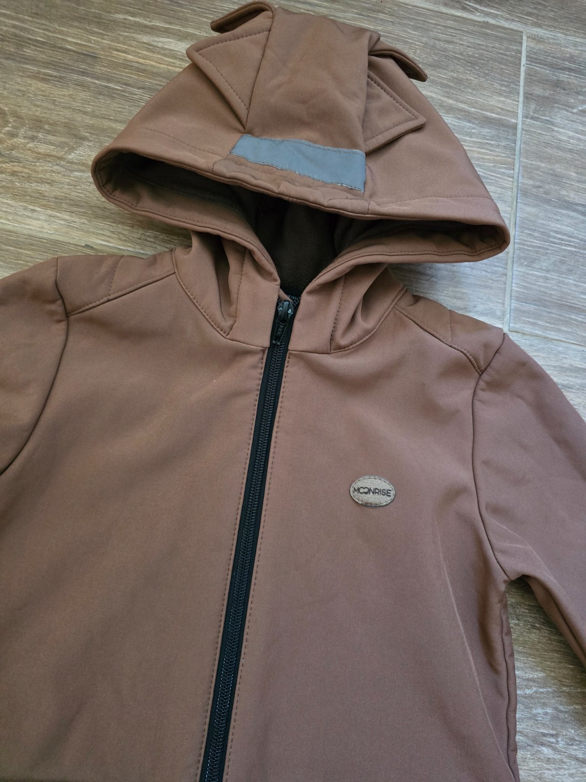 Softshell s fleecom vhodné na prechodné obdobie a zimu. Bundička ma vpredu jednoduché vrecká olemované lemovaciou gumičkou. Kapucňa je vyvýšená. Vo vnútry bundičky je putko na zavesie. Na kapucke...