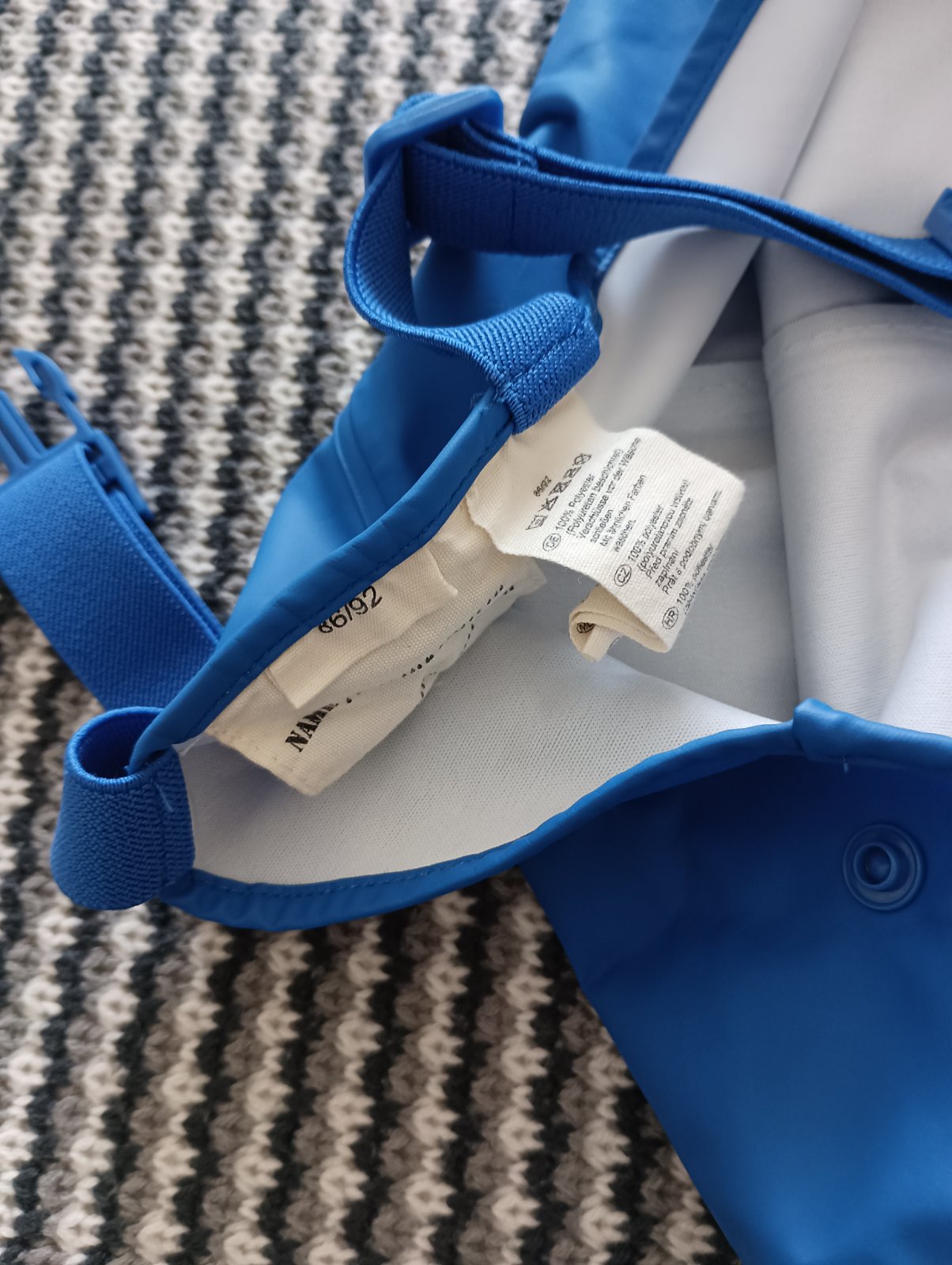 Predám nohavice do dažďa vo veľmi dobrom stave. Rozmery odfotené. Traky nastaviteľné, viete regulovať dĺžku. Veľkosť 86/92.