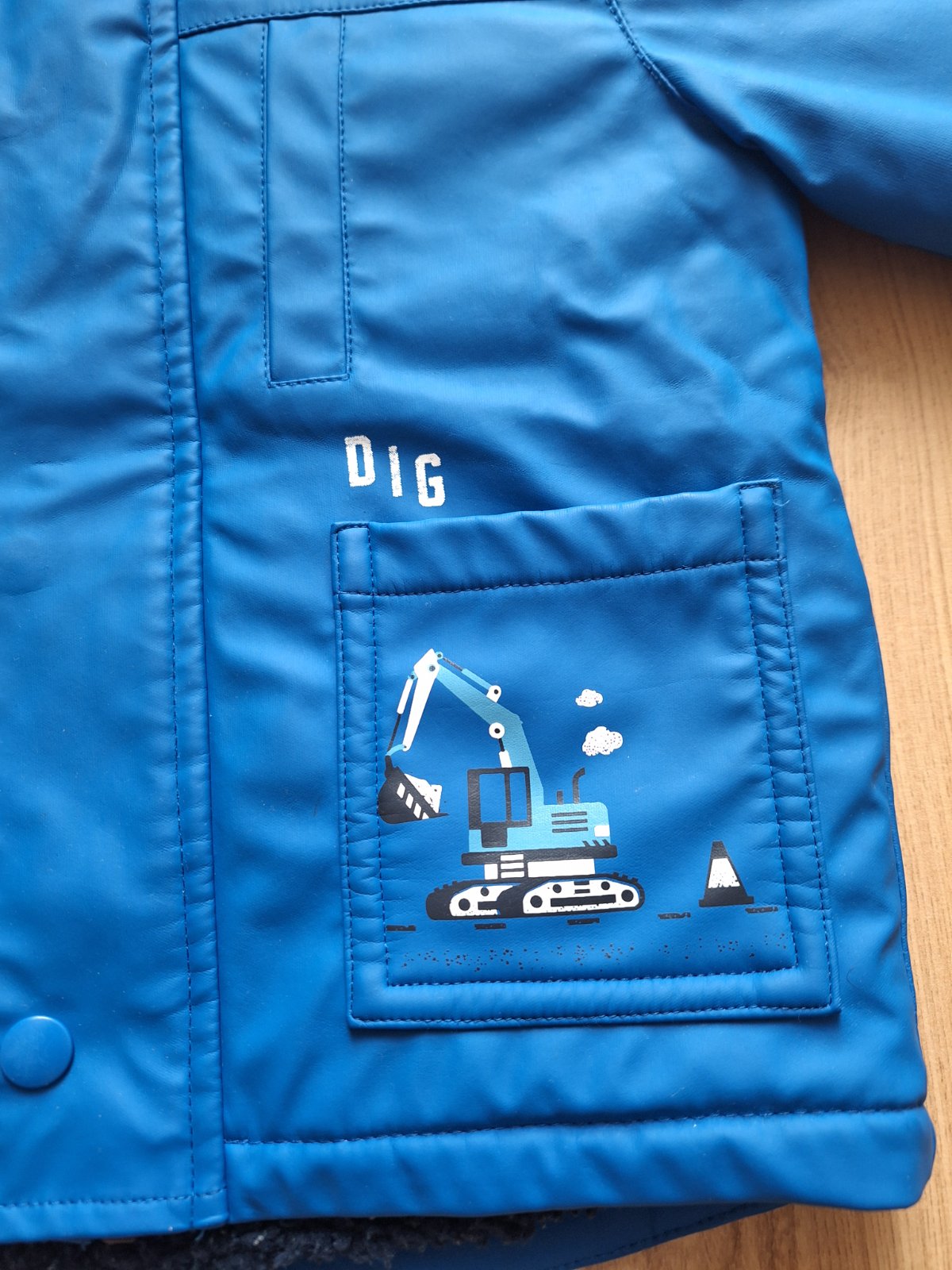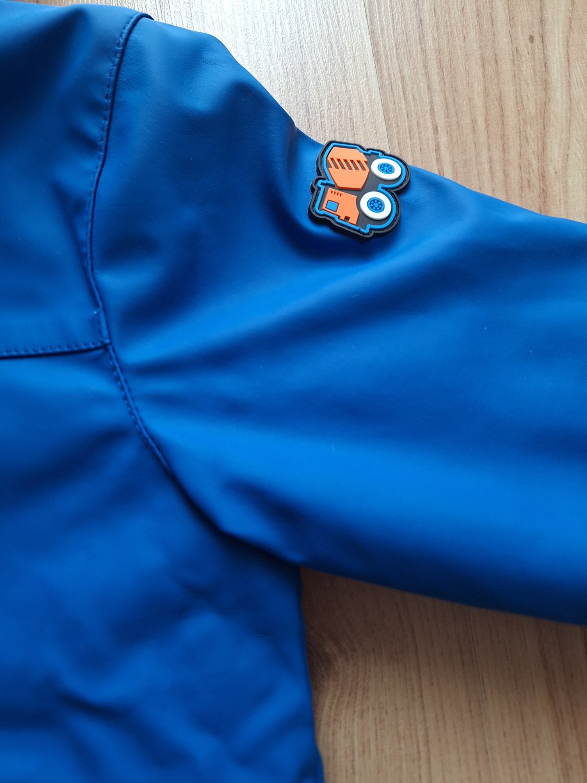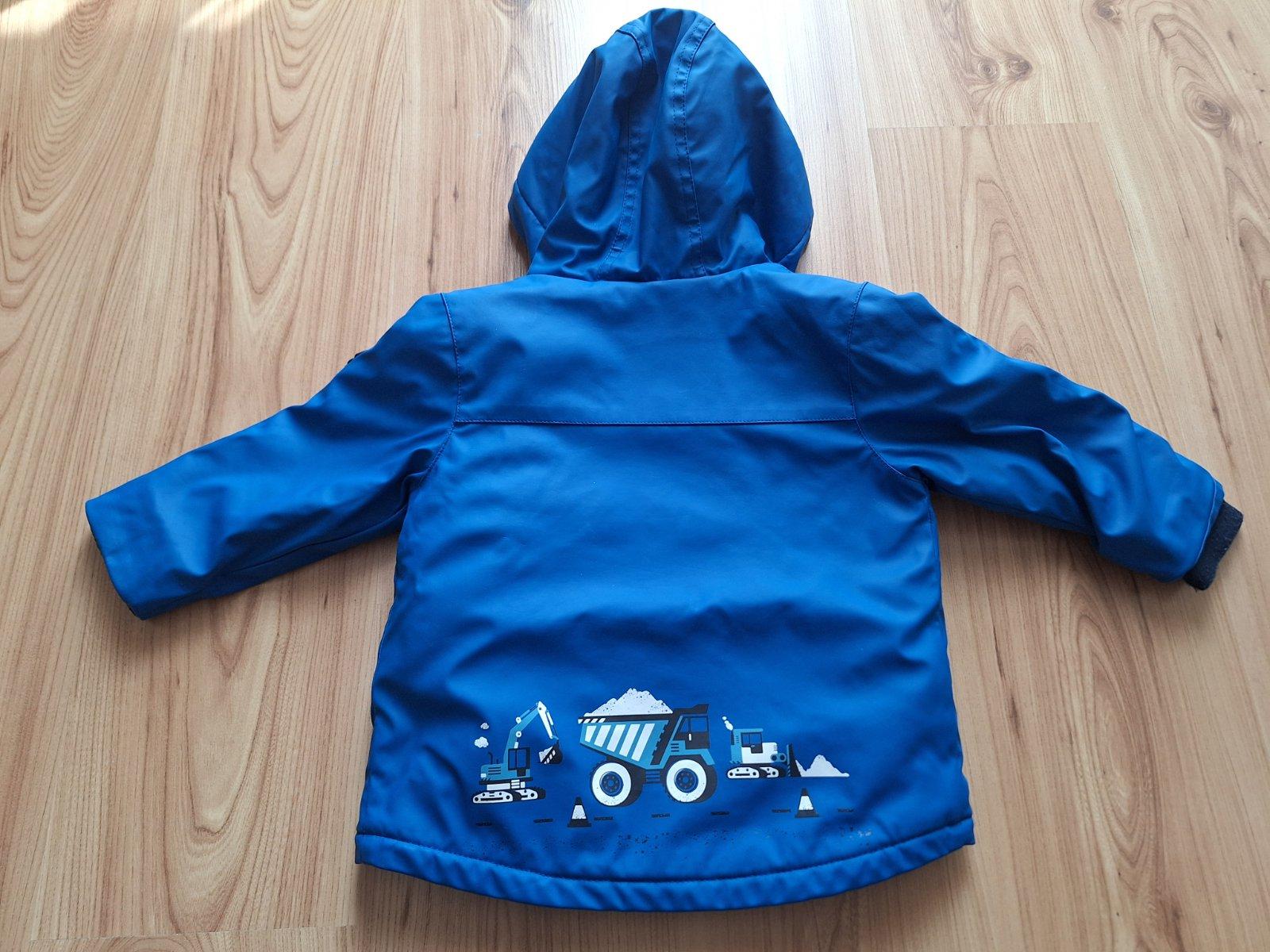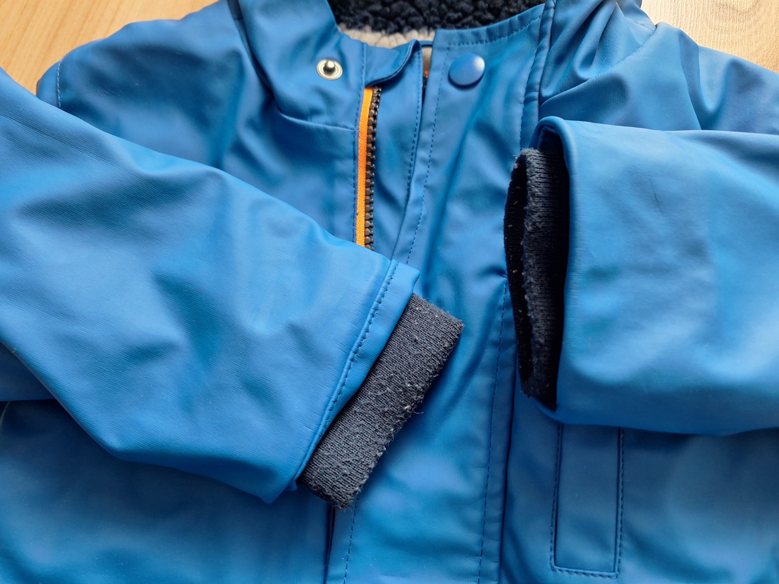 Nosená, pogumovaná bunda do dažďa, na niektorých miestach vidno nosenie (viď foto). Uvedená veľkosť na štítku je 86, reálne však 92, aj 98.