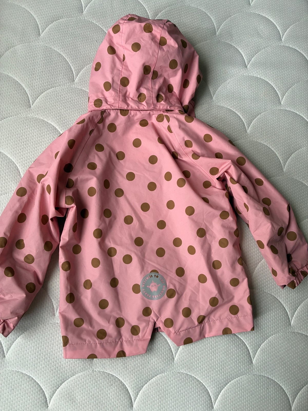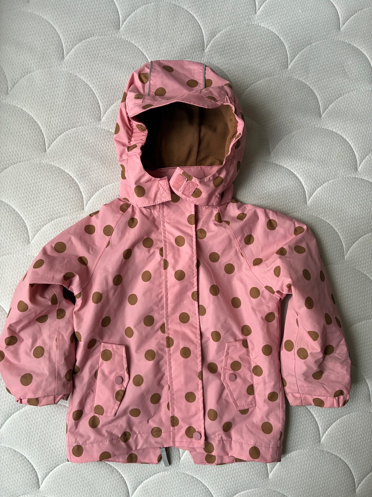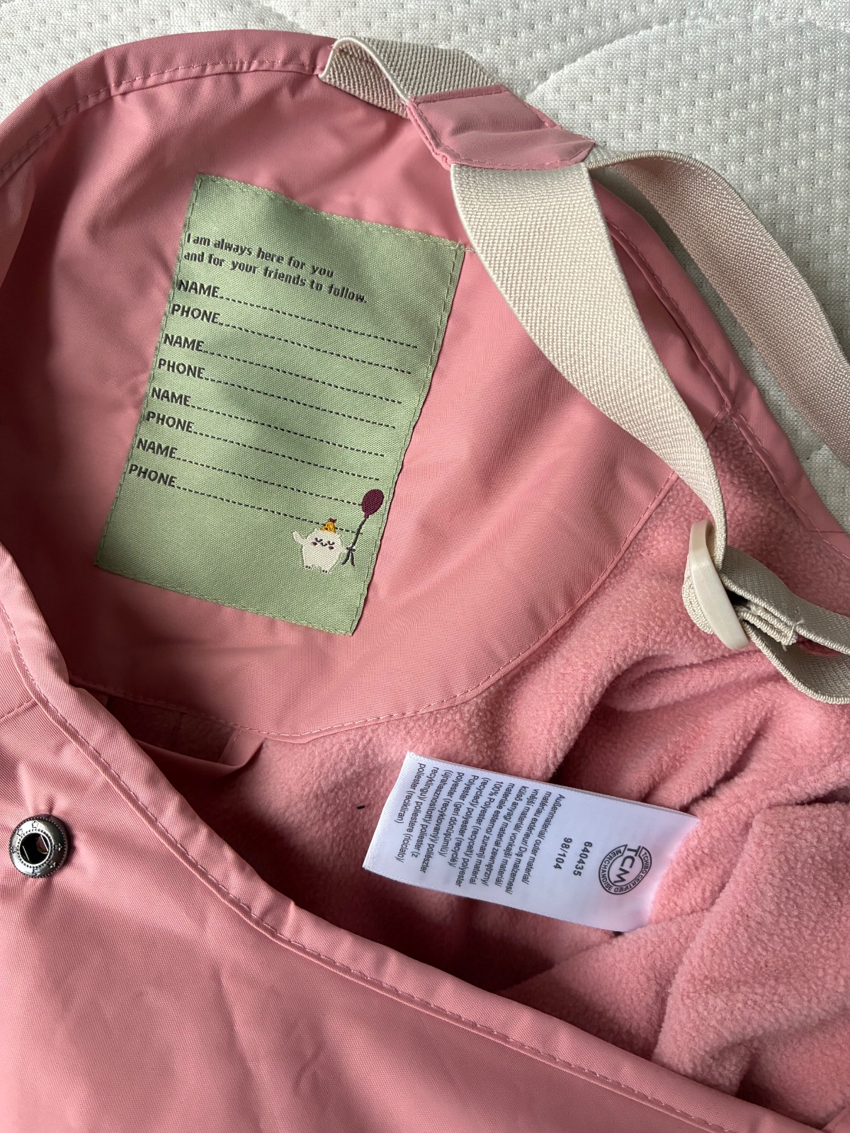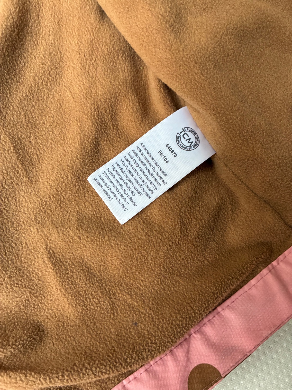 Pogumovana nepremokava suprava do dazda - bunda s kapucňou a nohavice na traky (nastavitelne). Vel.98 ale my sme ho nosili urcite do 4r.