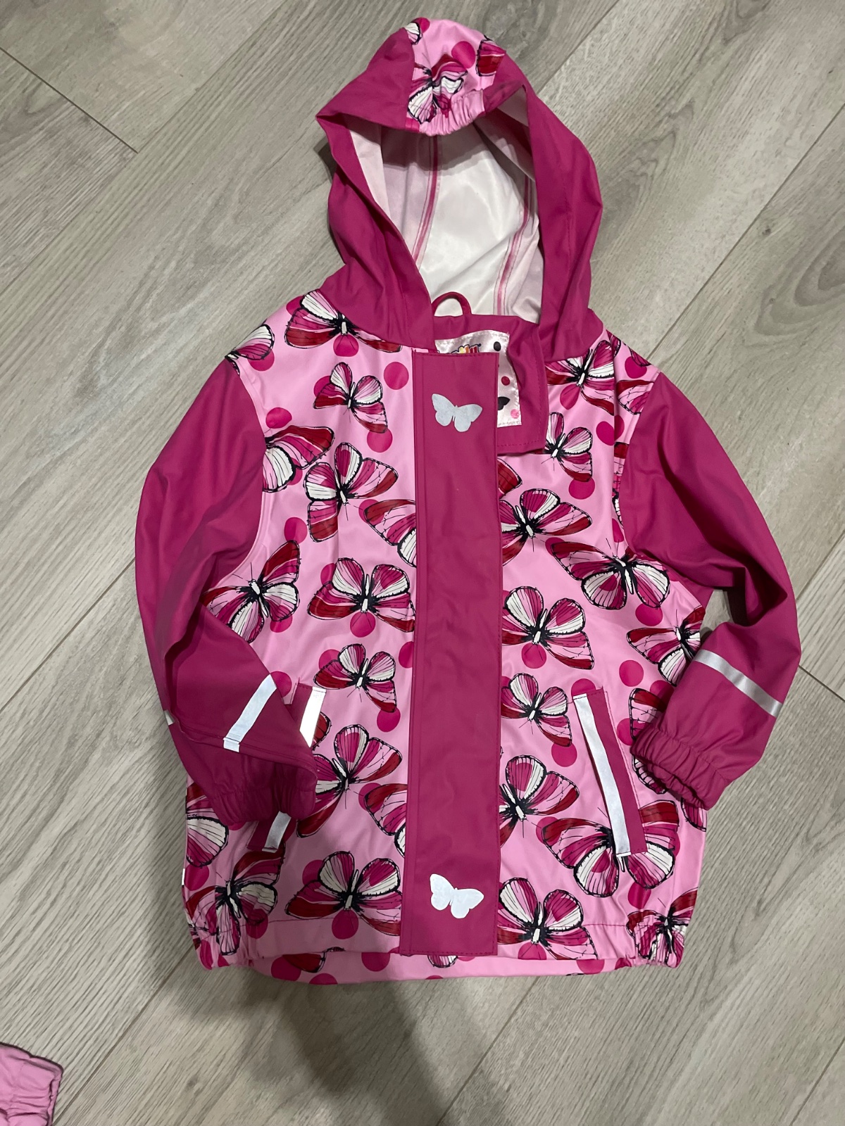 Peckova nepremokava bundicka, s roznymi detailami, reflexne prvky, prekryty zips, odopinatelna kapucna, bez poskodeni, dlzka 42cm, rukav 40cm. Velkost pisana 98 ale urcite aj do 110 sme nosili.