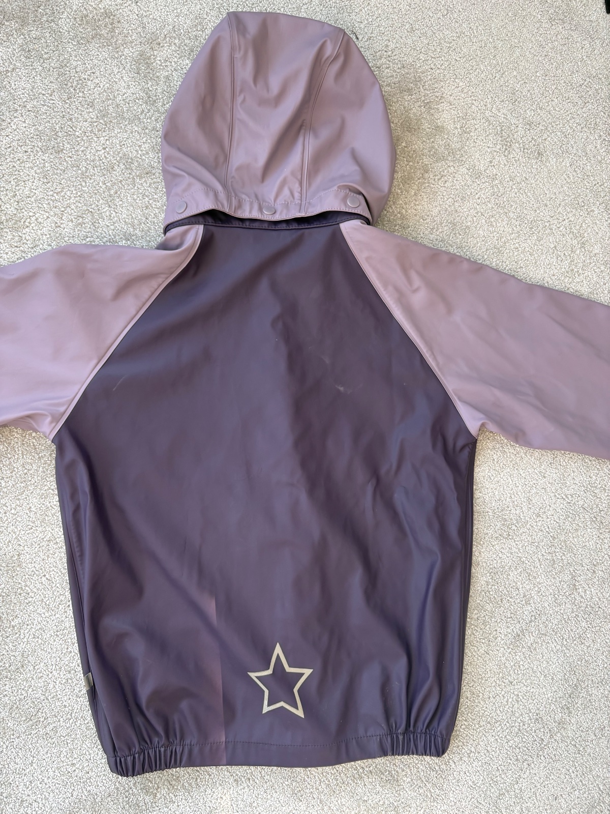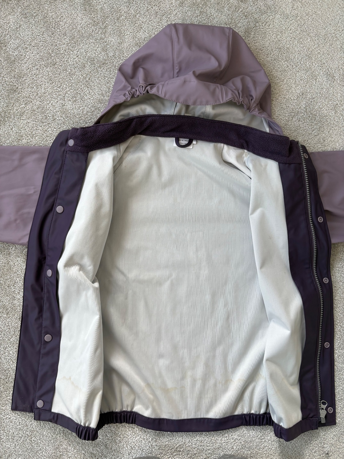 Velmi pekna bundicka do dazda, podsita neonovym teplym flisom. Kapuca sa da odopnut Je to set s nohavicami - tie su v inom inzerate - ako set ponukam za 12€ Vrl.122/128 Celková dĺžka 48cm Šírka ...