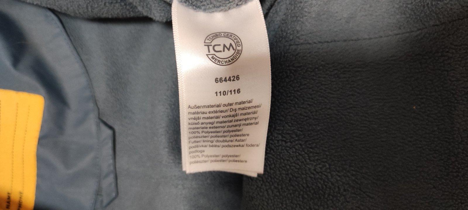 Vo vnútri zateplené flisom, nepremokavé, v dobrom stave, bez dvierok vo veľkosti 110/116. Reflexný pásik je od prania trochu zošúchaný.