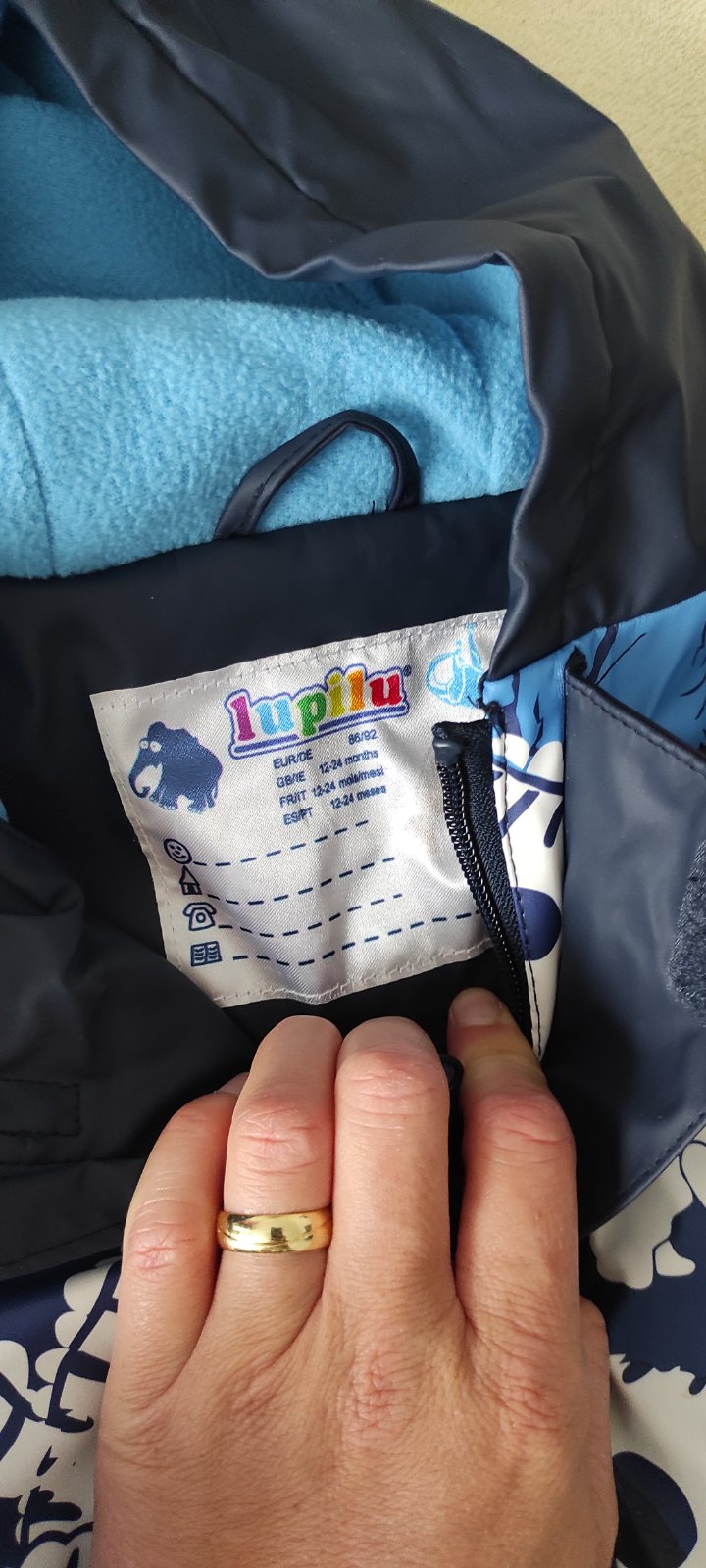 Super do dažďa,vetra Bunda je 86/92,nohavice o číslo väčšie,ale nosili sme spolu Zateplené