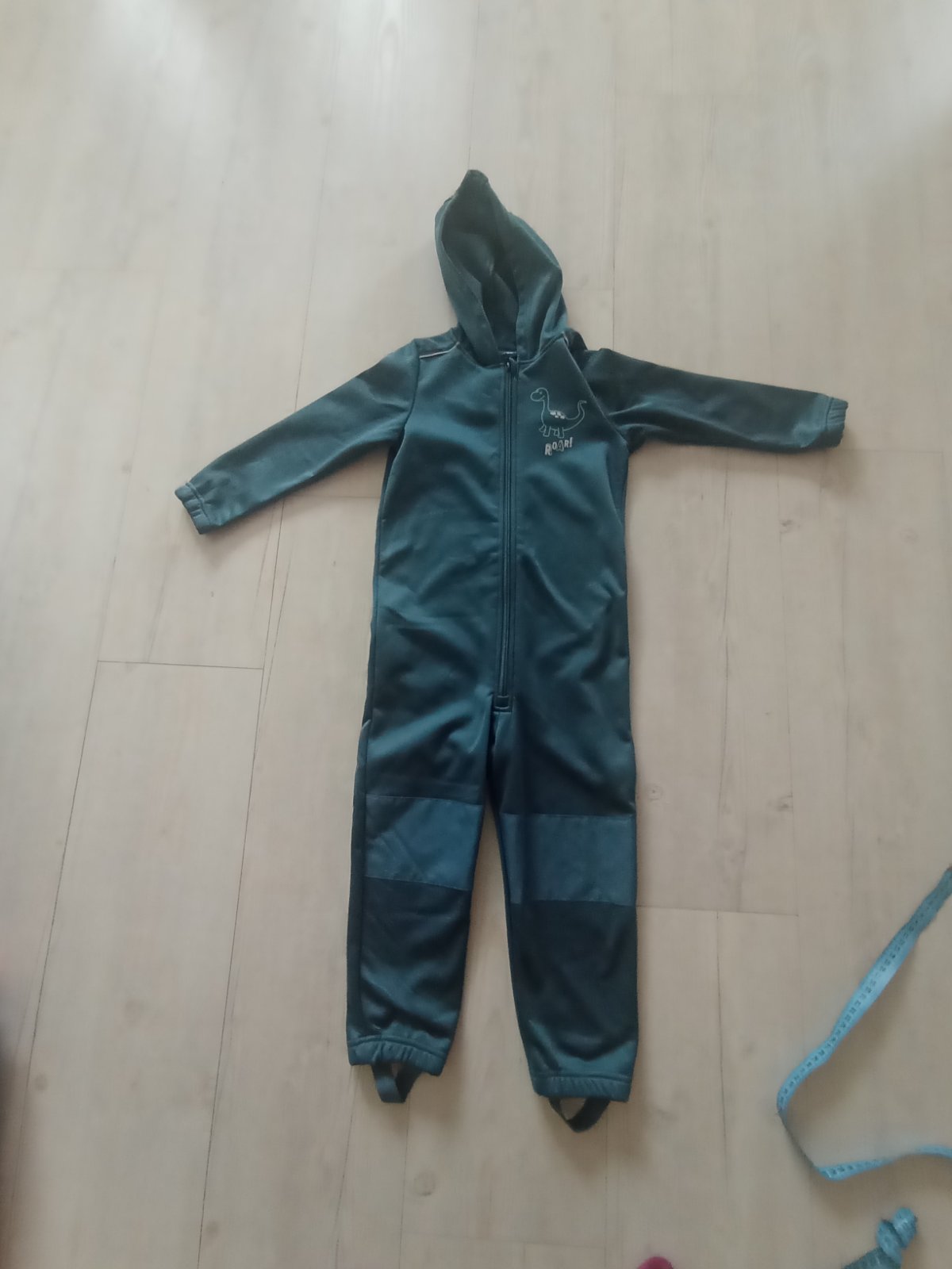 Zateplený prechodný softshellový overal, 110/116, v pohode aj 122, dĺžka 94cm. Neprefúka, nepremokne, na kolene označené mini roztrhnutie vrchnej vrstvy pri páde z bicykla, pod ňou je ďalšia nepošk...