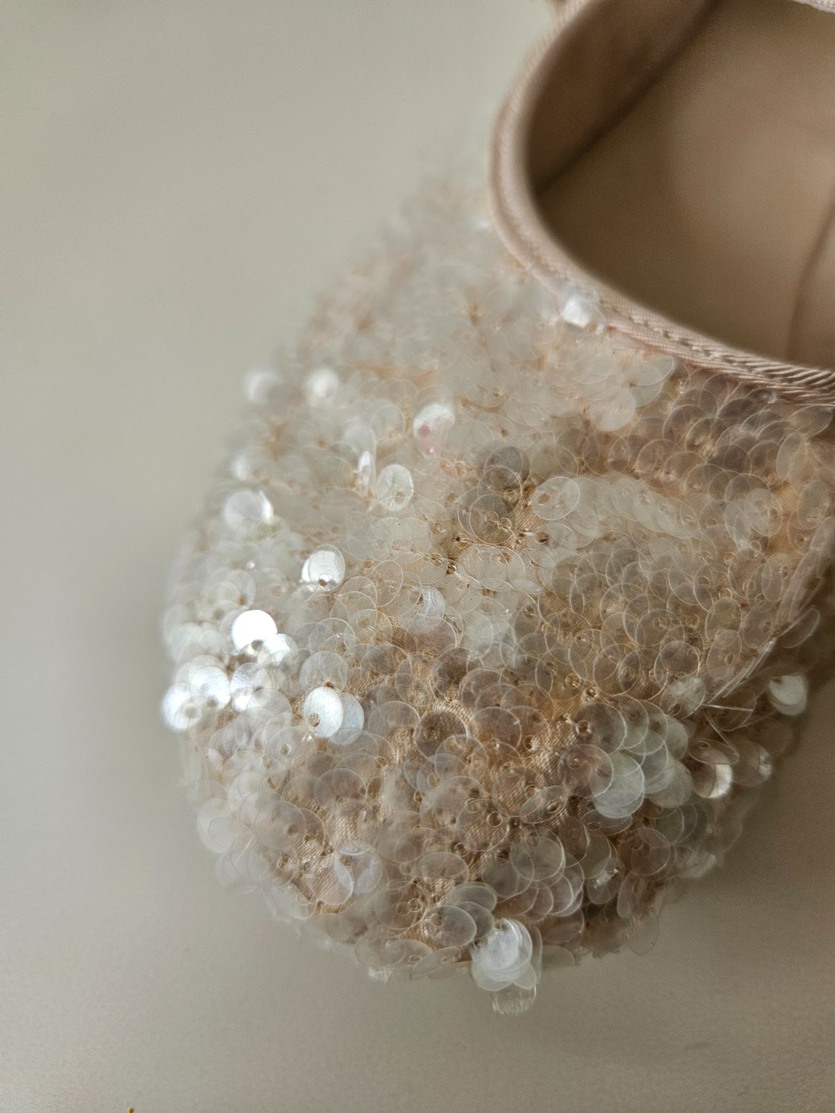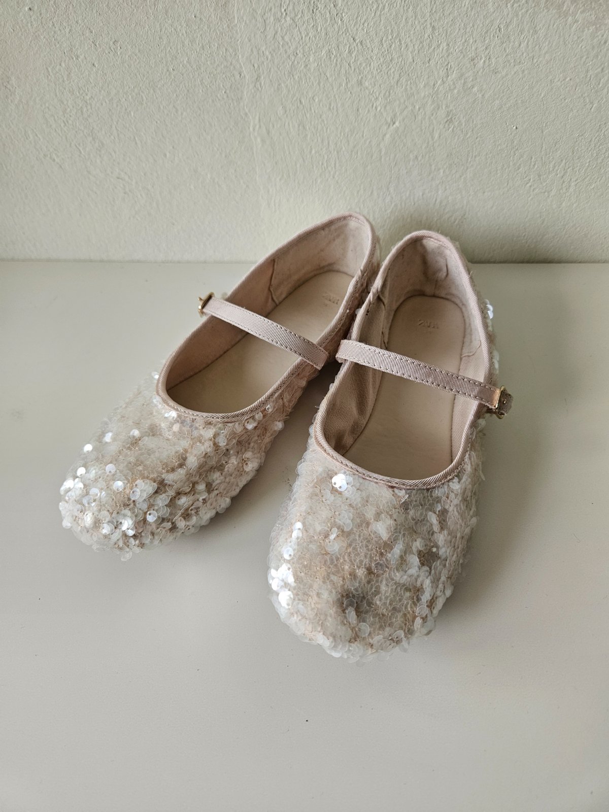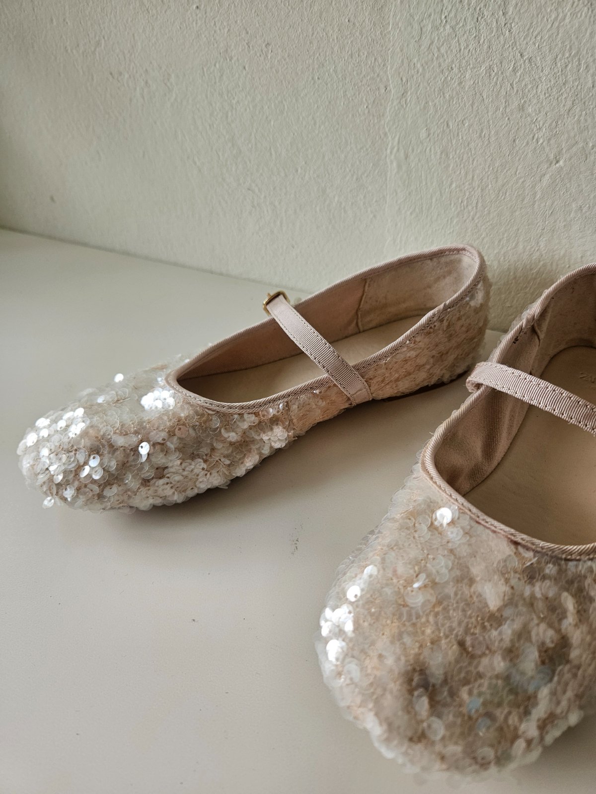 Krásne flitrované dievcenské črievičky/balerínky. Nosené ale stále vo veľmi dobrom stave bez poškodení.