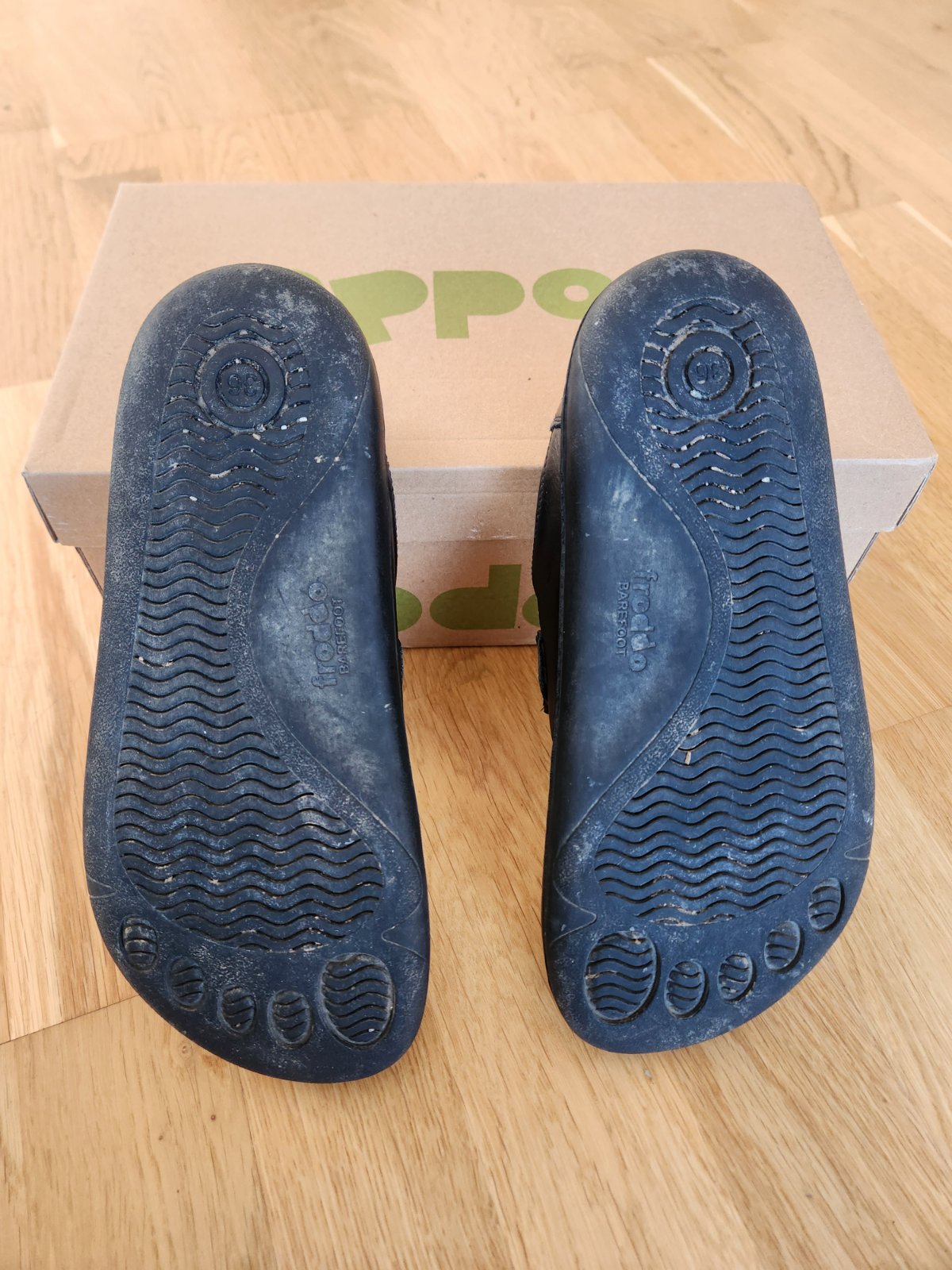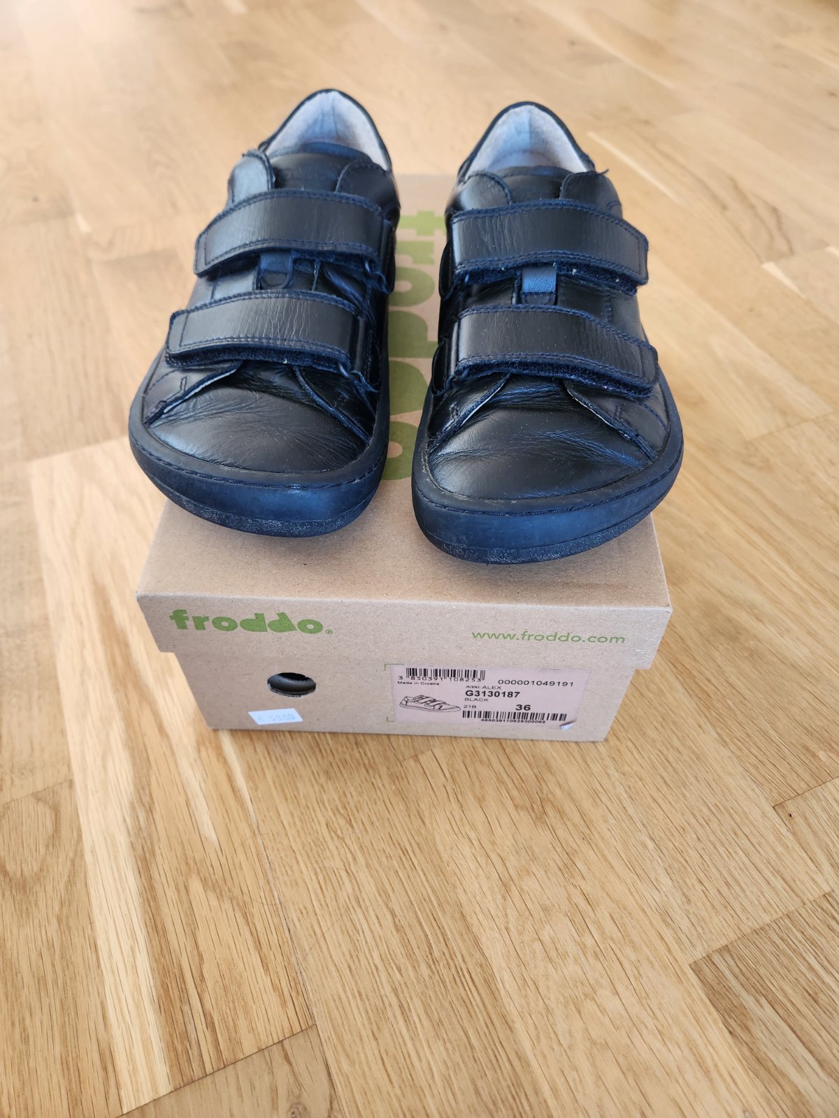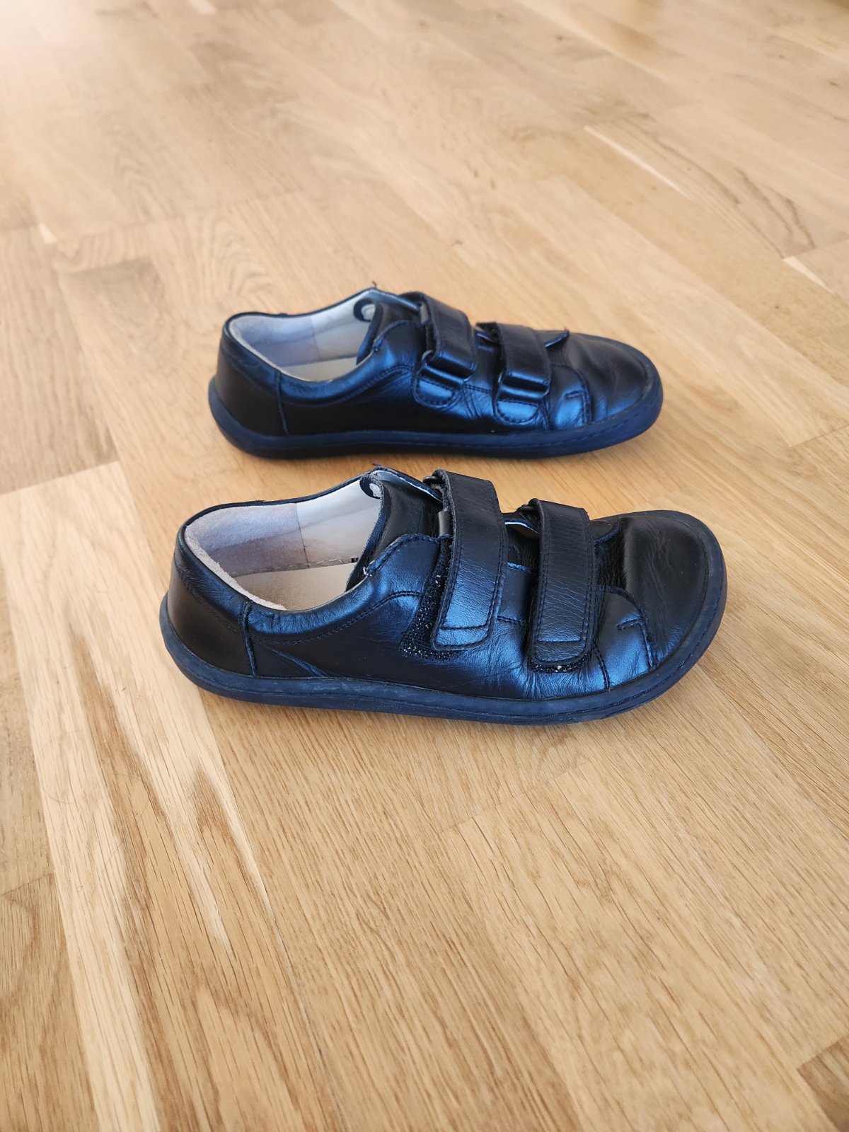 Froddo čierne kožené celoročne barefoot topánky. Veľkosť 36, rozmery na foto. Perfektný stav Mala som ich max 1mesiac a pol. Pre mňa sú veľké. Napriek tomu mierne odtlačky na vložkách. A trochu zaf...