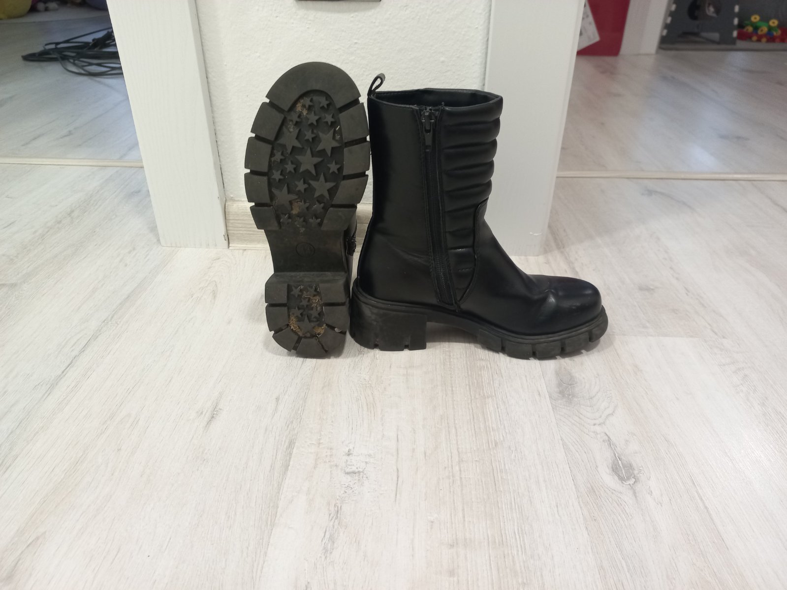 Čižmy nosené jednu sezónu mierne zateplené. Škrabanec na ľavej cižme vpredu nie je veĺmi vidno. Inak bez poškodení.