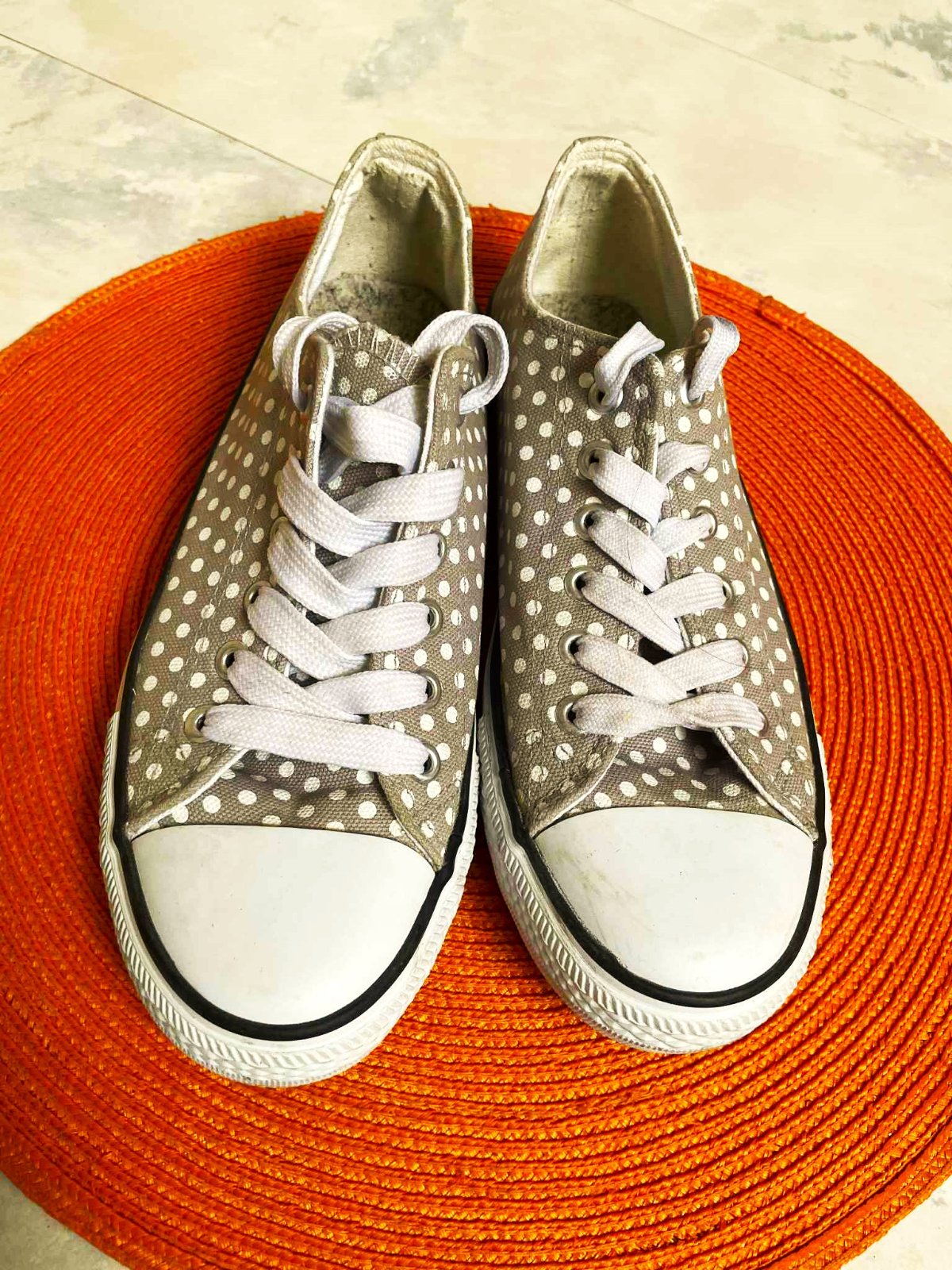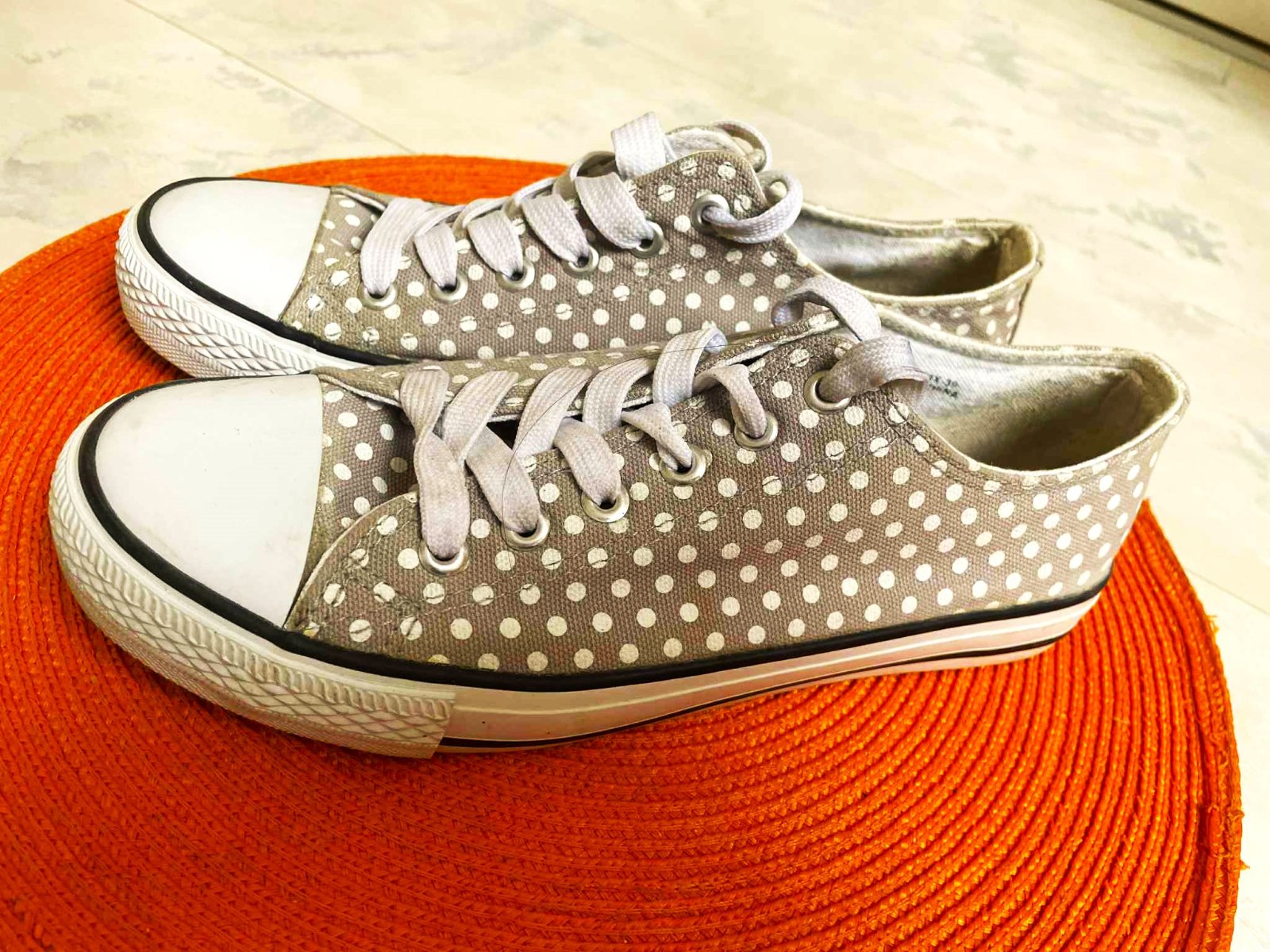 nevšedné neznosené bodkované tenisky,top stav, vn. dlžka 24,3 - 24,5 cm,uvedená veľkosť 39,ale podľa dlžky 24,3 cm je to na 38,5 - 39